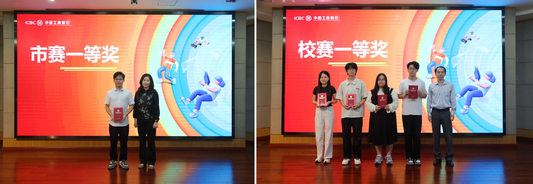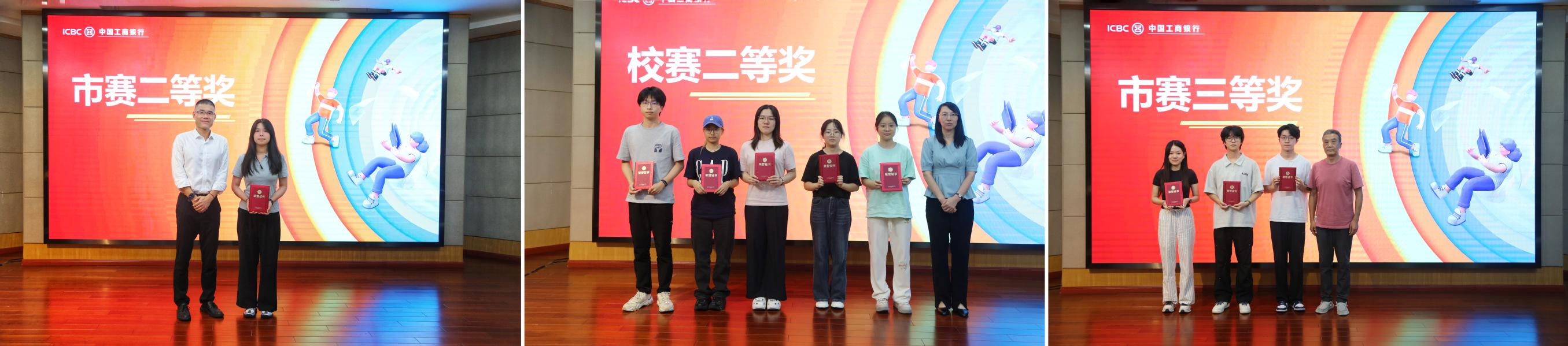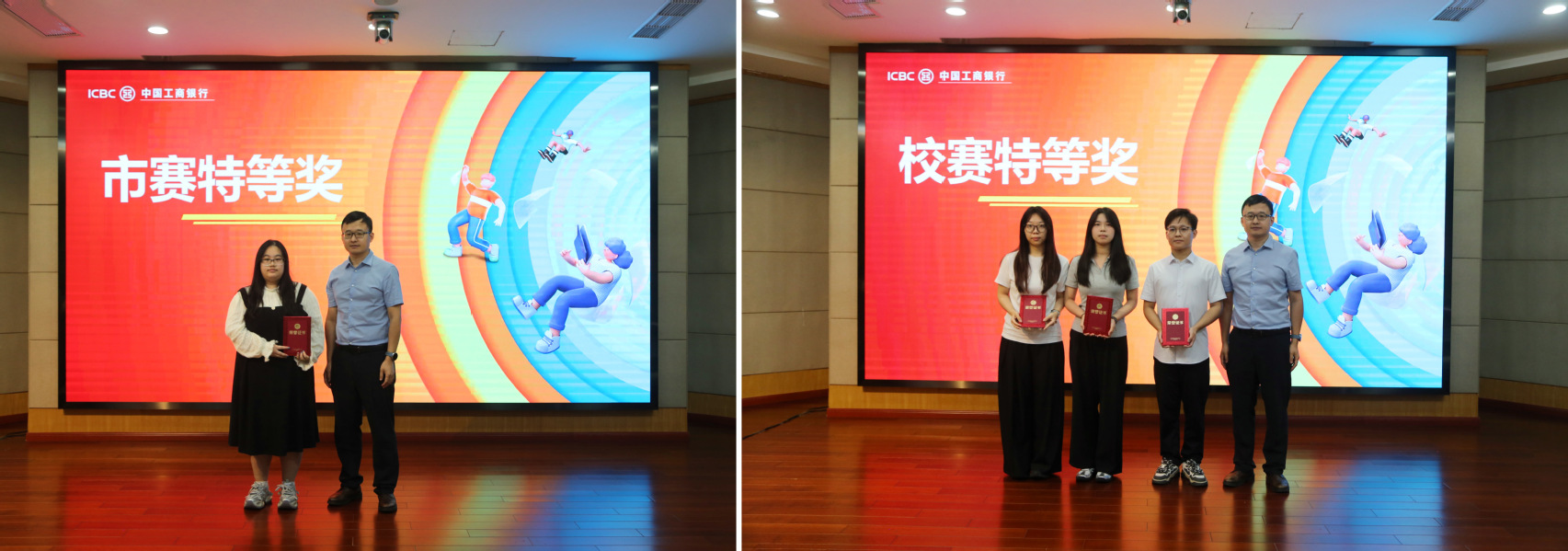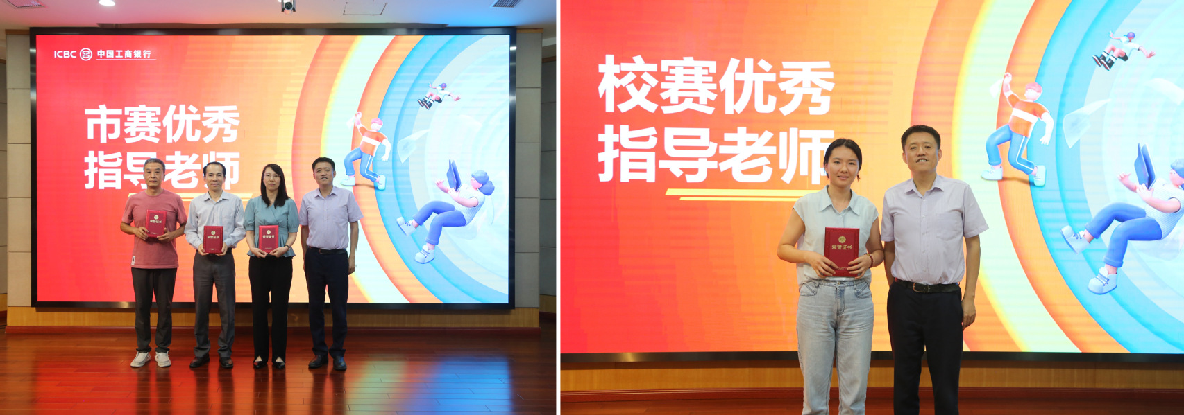 随后进行了第15届“工行杯”金融科技创新大赛颁奖。房志明、梅竹影等领导、老师分别为获得市赛和校赛的特等奖、一等奖、二等奖、三等奖的选手颁发获奖证书和奖品。顾贝伶为市赛及校赛优秀指导老师颁发证书。