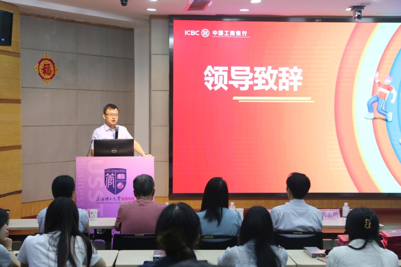 房志明代表管理学院向长期携手推进 “产学研用” 协同育人的中国工商银行表示感谢。他提到管理学院立足学校 “工学为主、多学科协调发展” 的优势,打造 “工科+经管” 的交叉特色,与金融科技 “技术赋能金融” 的核心逻辑高度契合。“工行杯” 大赛作为全国性的重要赛事,为大学生提供了一个展示创新能力和实践成果的优质平台,鼓励同学们积极参与,在大赛中锻炼自己,为未来的职业发展积累宝贵经验。