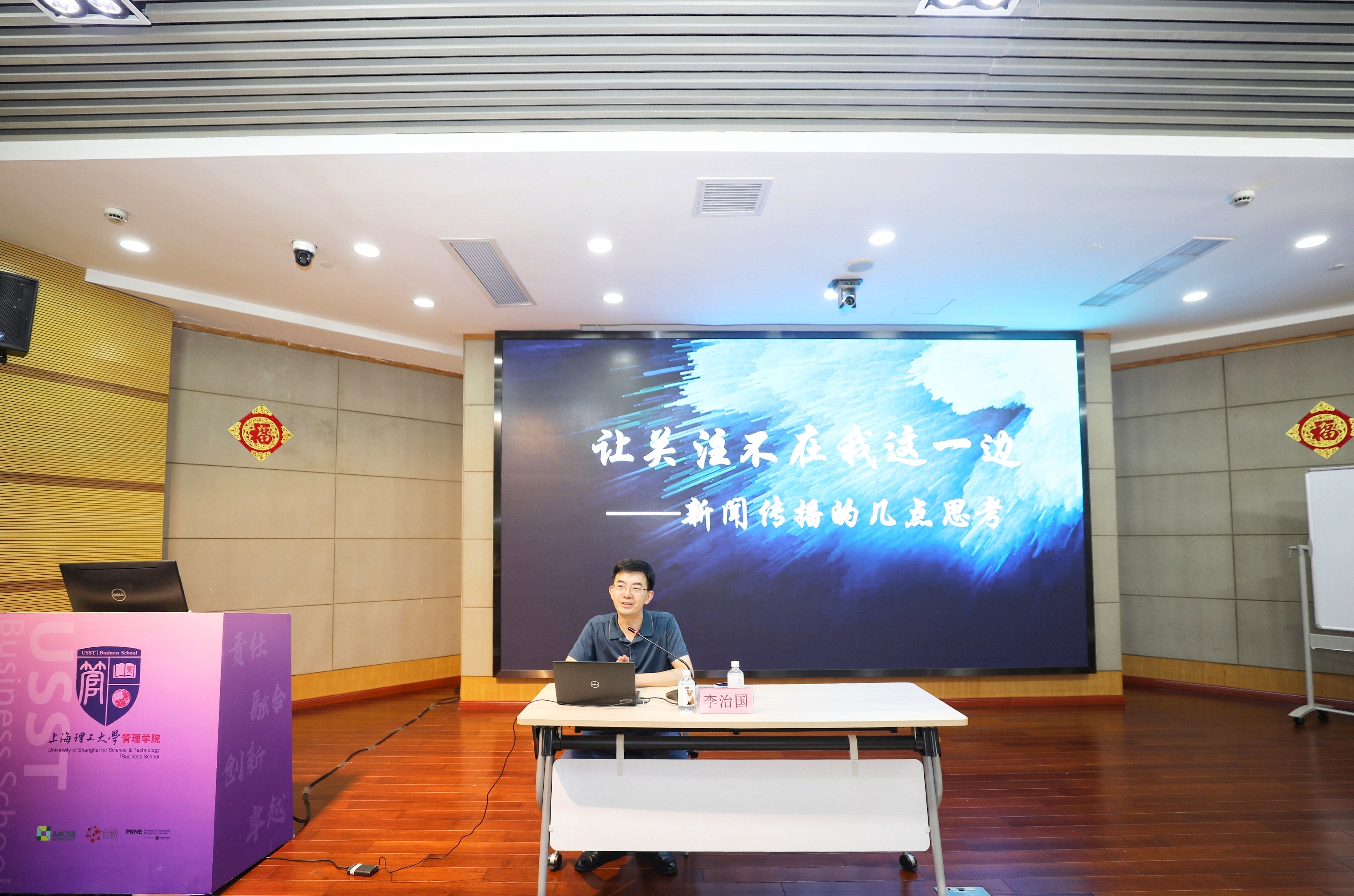 9月21日上午,经济日报上海站站长李治国应邀为管理学院师生作题为《让关注不在我这一边——新闻传播的几点思考》的媒介素养提升专题报告。管理学院师生通讯员、党支部书记、师生代表等参加报告会。报告会由管理学院党委书记马静波主持。