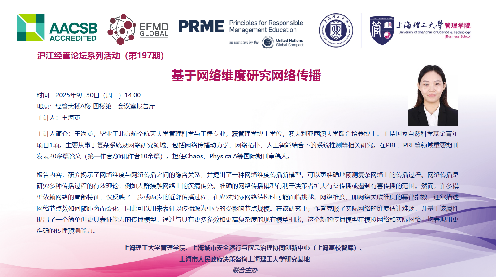 沪江经管论坛系列活动(第197期):基于网络维度研究网络传播