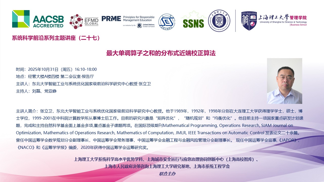 系统科学前沿系列主题讲座(二十七):最大单调算子之和的分布式近端校正算法