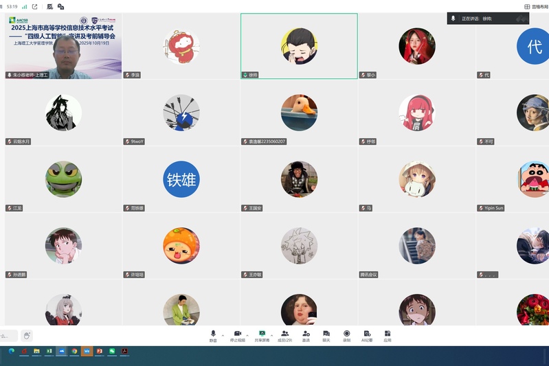 10月19日,为进一步落实信息技术创新人才培养要求,助力学生提升人工智能应用能力与就业竞争力,上海理工大学管理学院举办了“2025年上海市高等学校信息技术水平考试——四级人工智能”宣讲及考前线上辅导会。会议由人工智能系支部书记、上海理工大学电子商务发展研究院副院长朱小栋主持。