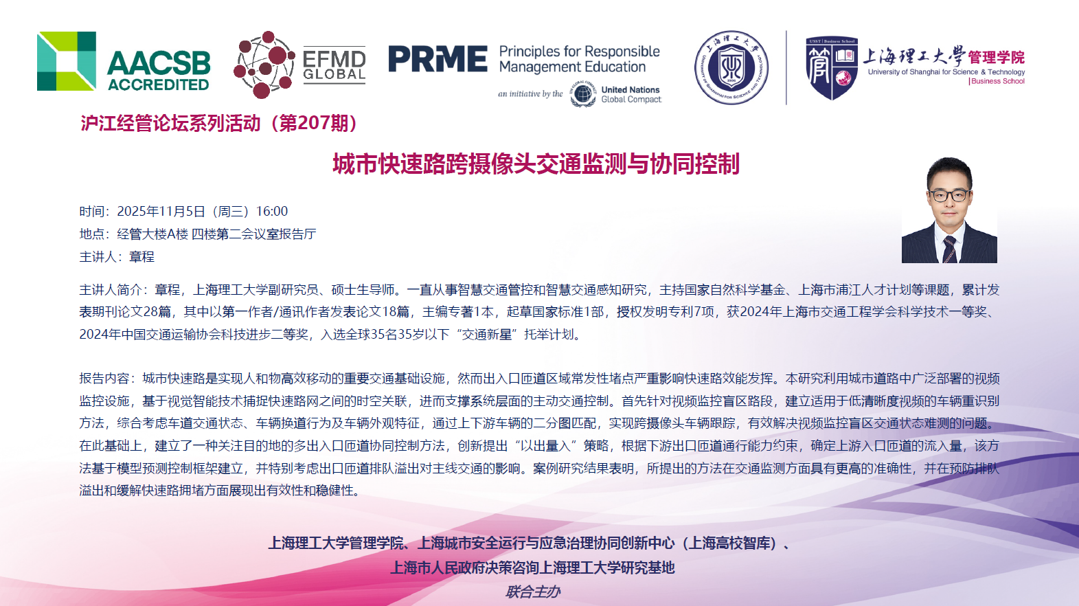 沪江经管论坛系列活动(第207期):城市快速路跨摄像头交通监测与协同控制