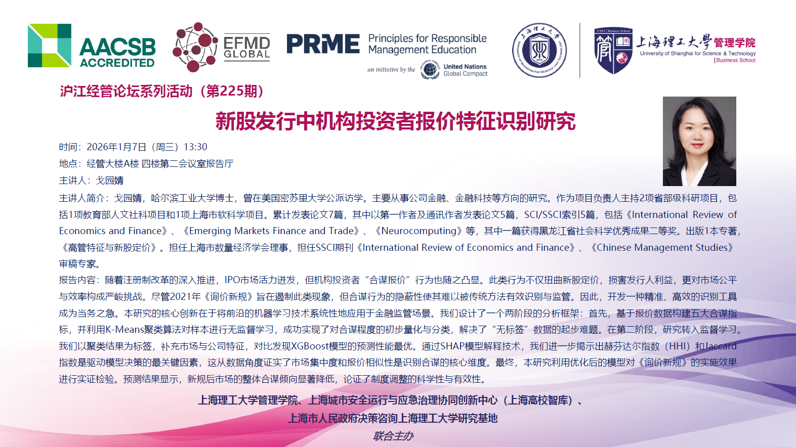 沪江经管论坛系列活动(第225期):新股发行中机构投资者报价特征识别研究