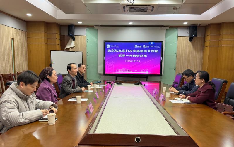 3月13日下午,厦门大学继续教育学院微专业项目负责人、党政人才学习中心主任卢幼平,学历教育中心副主任、夜校项目副组长陈冬灿一行来访,开展微专业建设专题调研交流。管理学院本科教务办主任束义明、金融与国际经贸系主任张青龙、科技金融微专业负责人段江娇,数字经济与贸易微专业任课教师林敢出席会议。