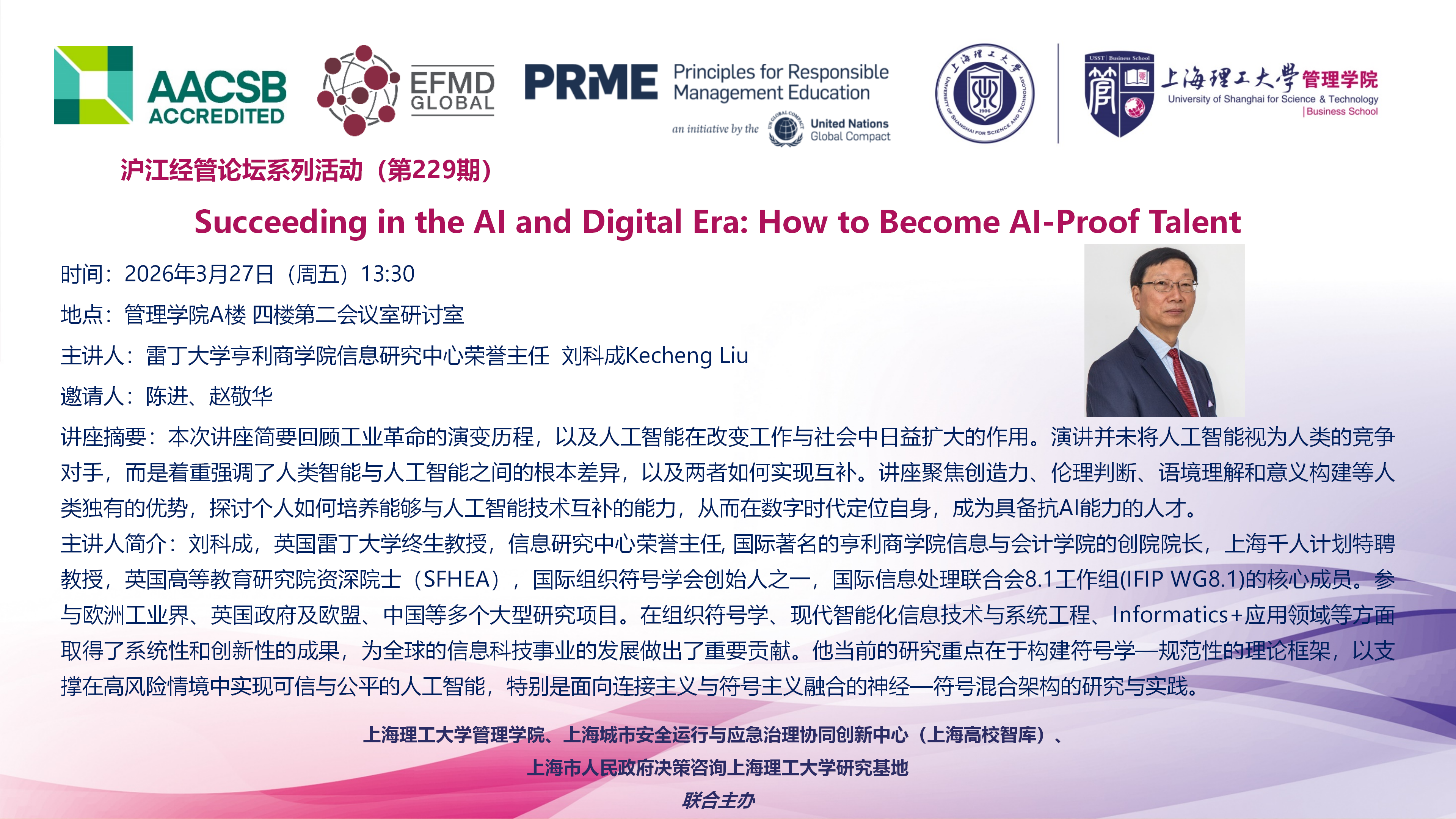 沪江经管论坛系列活动(第229期):Succeeding in the Al and Digital Era: How to Become Al-Proof Talent