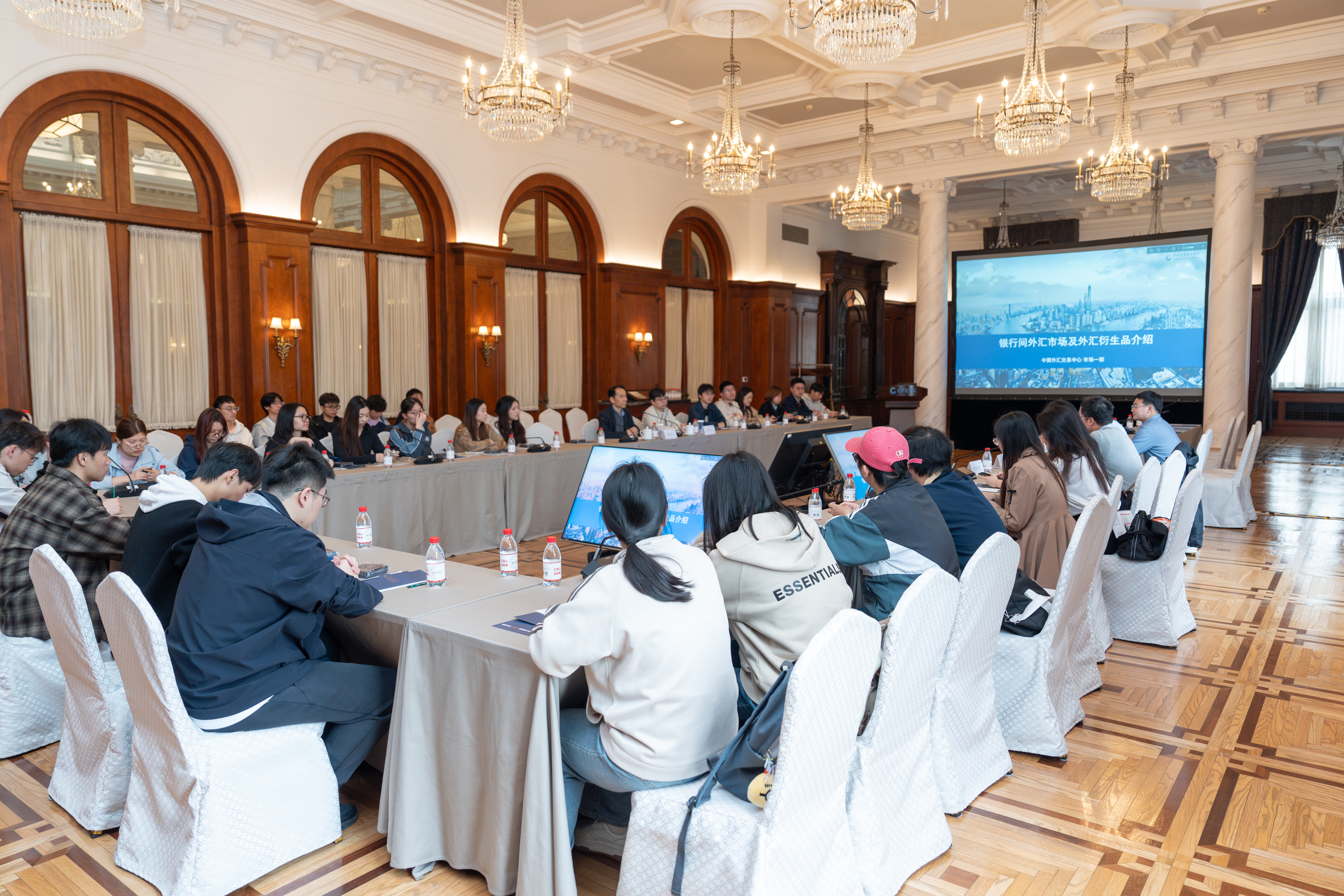 坐落于外滩15号中国外汇交易中心(全国银行间同业拆借中心)作为中国人民银行直属单位,是我国金融市场重要基础设施,肩负着构建全球人民币及相关产品交易主平台和定价中心的使命,为银行间外汇市场、货币市场、债券市场等提供全链条金融服务,授权发布人民币汇率中间价、人民币汇率指数、Shibor、LPR、FDR等核心基准指标。中国外汇交易中心市场一部高级经理刘翔、综合部(党委办公室)一级经理、团委书记刘雨宁、采购部二级经理、校友代表孙芸霞、市场一部沈昱成及《中国货币市场杂志》郭君祎出席本次参访活动。