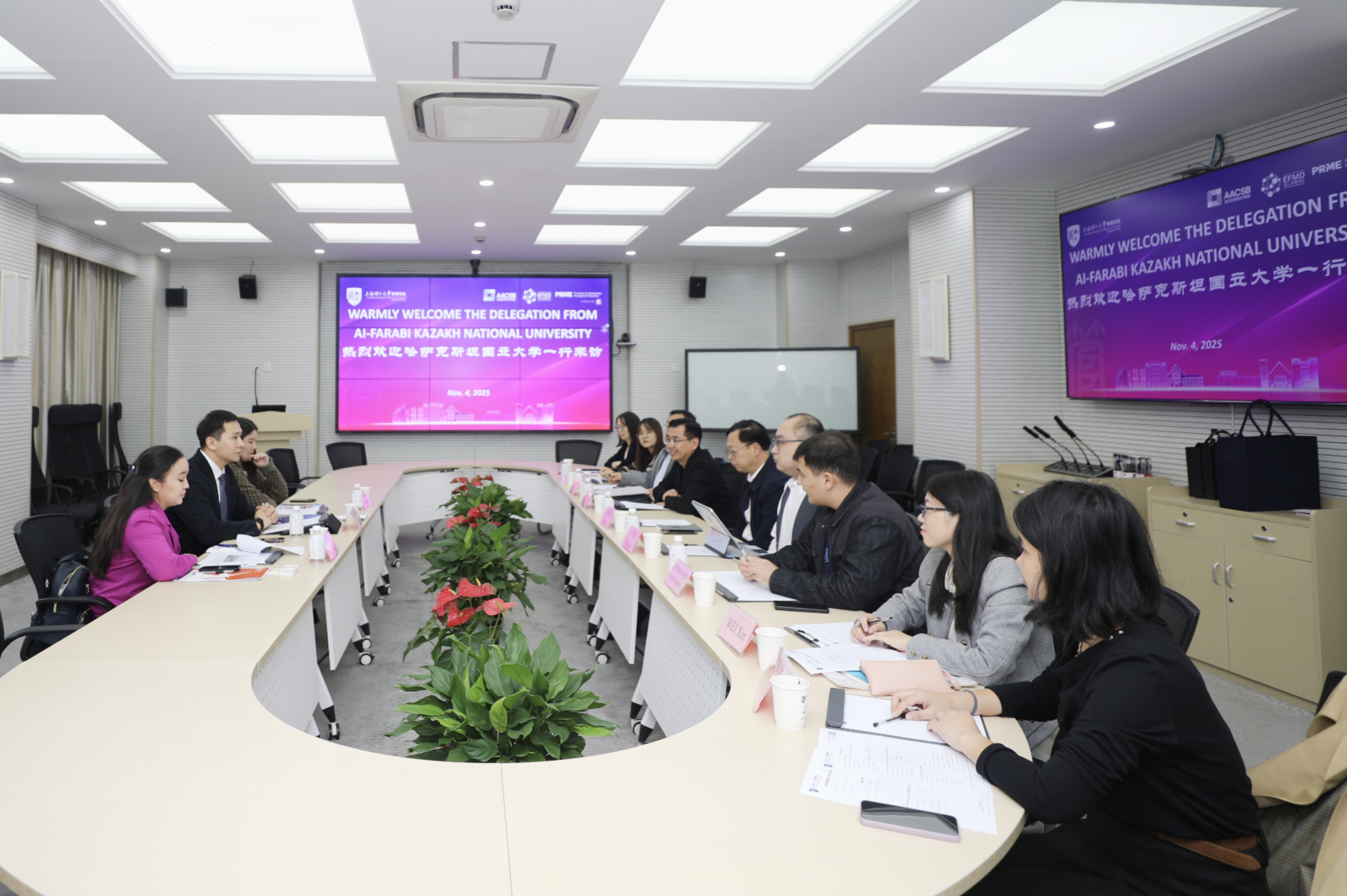 On the afternoon of November 4, Zharaskhan Saryyev, the dean of Farabi International Business School of KazNU, along with Chief Specialist Aizhan Zhansarbayeva and Specialist Saltanat Issakova, visited the Business School of the University of Shanghai for Science and Technology (USST). Zhao Laijun, the dean of the Business School, Liu Weiwei, the vice dean, Ge Yuhui, the executive deputy director of the Executive Development Programs (EDP) Center, and Xie Wei, the director of the Internationalization Office, participated in the meeting. The meeting was presided over by Liu Weiwei.