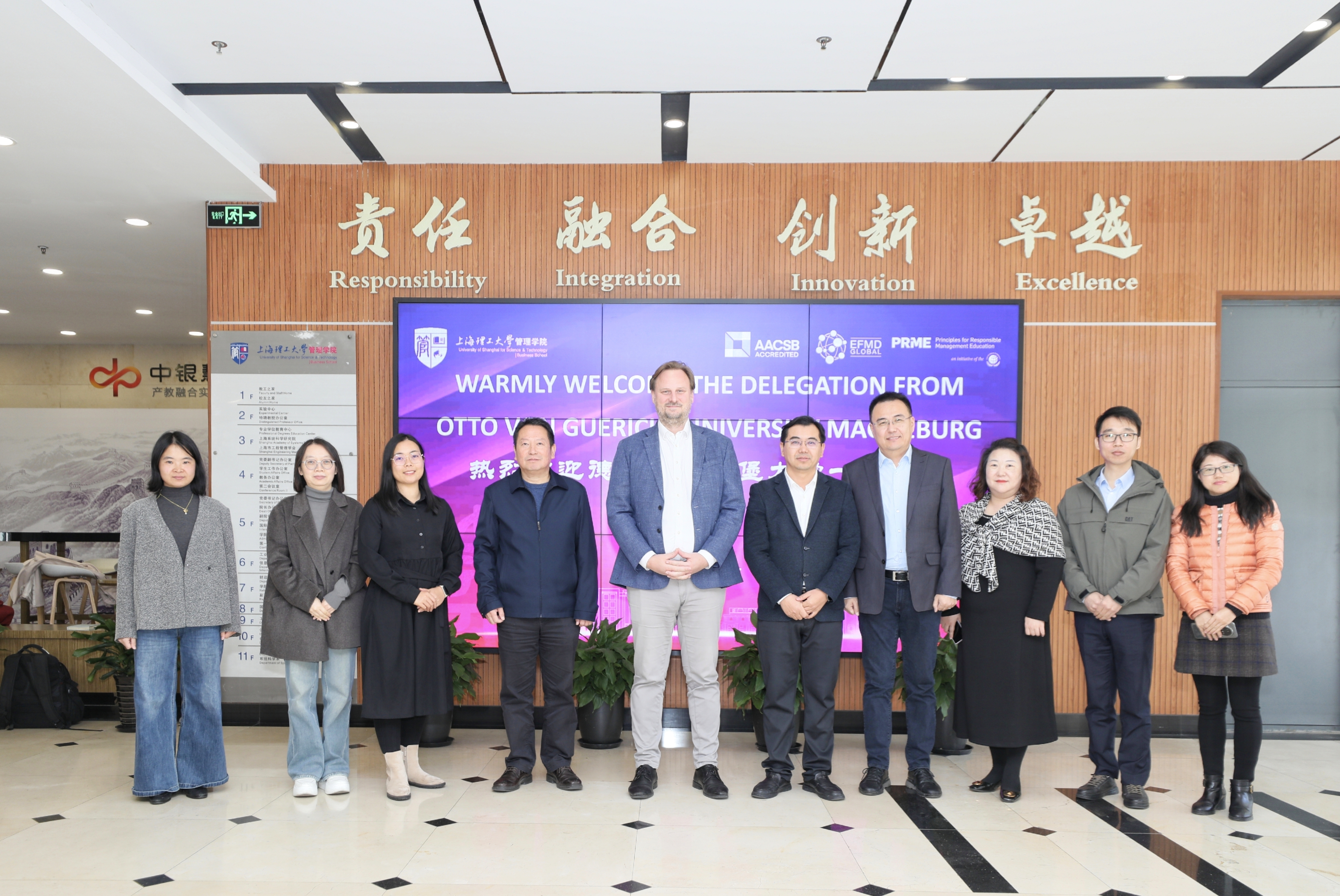 On the afternoon of November 25, a delegation from the Business School of Otto Von Guericke University Magdeburg(OVGU), including Executive Dean Christian Stahr, faculty member Liang Chunlan, and Head of the China Office He Linfu, visited the Business School. Party Secretary Ma Jingbo, Vice Dean Liu Weiwei, Director of the General Administrative Office Li Ying, Vice Director of the Department of Systems Science Zhang Guang, Director of the Internationalization Office Xie Wei, and others participated in the meeting. The meeting was presided over by Liu Weiwei.