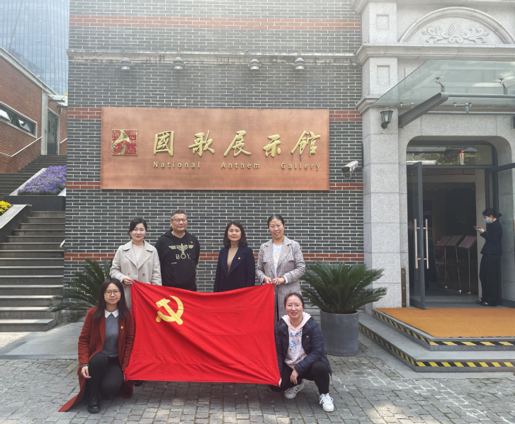 国歌展示馆位于上海市杨浦区荆州路,上世纪三十年代,这里曾是进步电影《风云儿女》的拍摄地,而《义勇军进行曲》则是影片《风云儿女》的主题曲。国歌展示馆总面积1500平方米,由序厅、国歌诞生厅、国歌纪念厅、国歌震撼厅、我和国歌厅等6个部分组成,全面展示《义勇军进行曲》的诞生、传播、立法及其深远影响。由田汉作词、聂耳作曲的《义勇军进行曲》,诞生于中华民族生死存亡的危急关头,是近代中华民族反抗帝国主义侵略,争取民族独立解放的战斗号角。通过实物陈列、场景再现、多媒体互动展示,国歌展示馆生动演绎了《义勇军进行曲》从电影《风云儿女》的主题曲到成为中华人民共和国国歌的伟大光辉历程。当嘹亮的国歌回荡在展厅里时,全体党员同志不禁深受感动,更能深刻体会国歌中所蕴含的爱国情感和伟大精神。