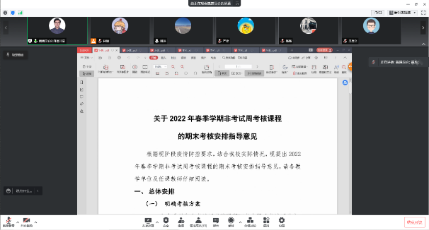 目前,上海疫情已经进入攻坚克难阶段,给临近期末的教学工作和考试工作带来了巨大困难。管理学院交通系统工程系全体教师积极响应学校和学院的号召,于2022年5月10日下午,通过线上腾讯会议的形式,围绕2022届本科毕业设计答辩工作、2022春季期末线上考试工作等召开了教学工作会议会议。会议由教学副主任刘魏巍老师主持,全体老师共同学习了《关于2022年春季学期非考试周考核课程的期末考核安排指导意见》,并就线上期末考试注意事项、本科毕业设计答辩安排以及毕业生就业工作推进等内容进行了热烈讨论,为教学工作的顺利推进提出了许多宝贵的意见和建议。