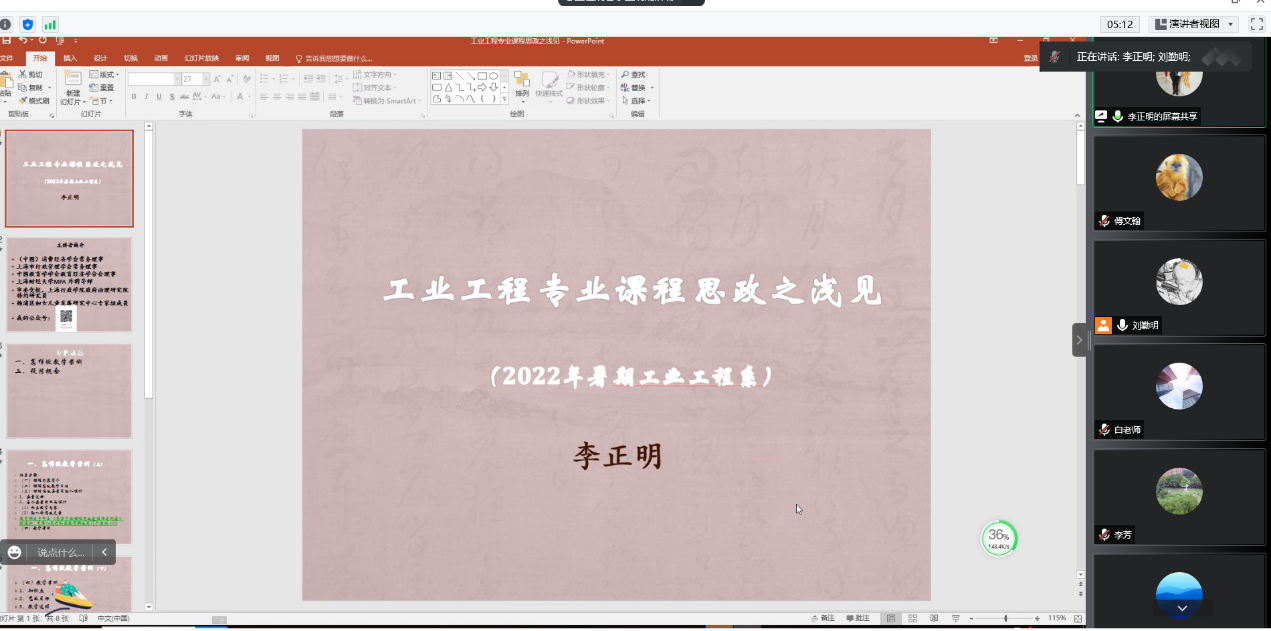 为了深化课程思政教学工作,把课程思政元素更好地融入到专业课程教学中,2022年7月26日上午,工业工程领航团队邀请了李正明教授以腾讯会议的形式举办课程思政建设专题讲座,报告由刘勤明老师主持,工业工程系教师共同参加了这次讲座。