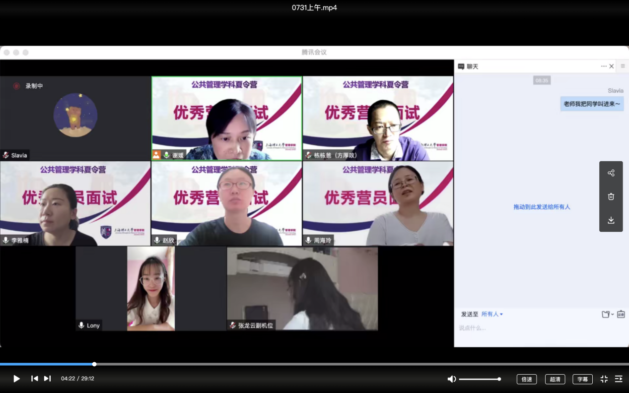7月31日,从上午8:30到下午5:30,公共管理系组织两组导师对入选的40位营员进行面试,择日将宣布优秀营员名单。