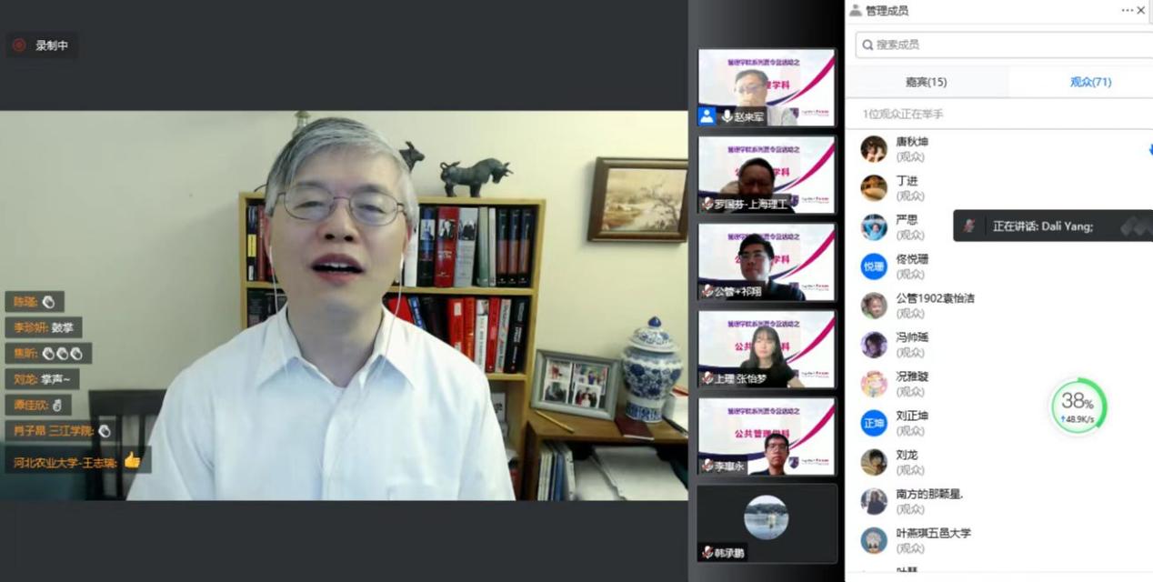 随后,来自芝加哥大学政治学系的杨大利教授为营员们带来了“Regulatory State-building In Comparative Perspective”专题讲座。杨大利教授从当前全球所面临的风险和不确定性入手,通过比较视野,介绍了美国、中国以及欧盟国家所面临的风险以及相应的监管问题。在互动环节,杨大利教授对赵院长、公共管理系多位教师以及夏令营营员的问题进行了细致回复与解答。