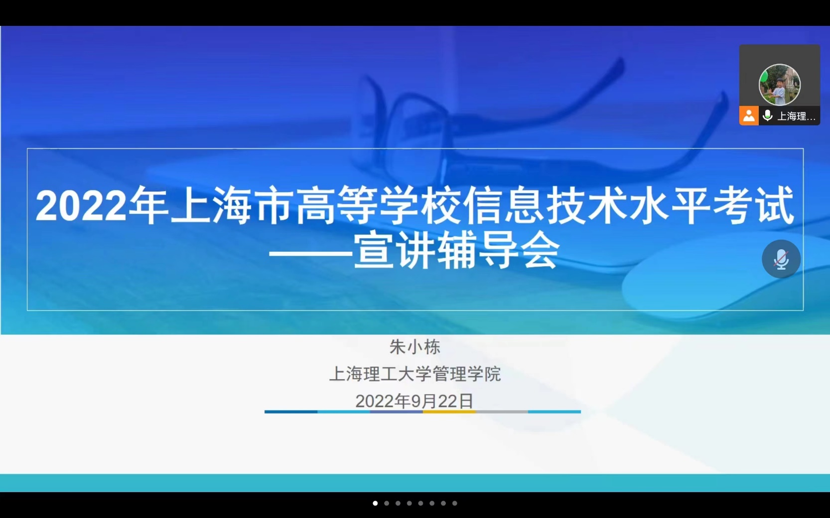 2022年9月22日,管理学院主办上海市高等学校信息技术水平考试(原上海市高等学校计算机等级考试)报考辅导会议,邀请了信息管理与信息系统系朱小栋副教授为大家做考试的动员、报名、复习和考试技巧等方面的辅导,管理学院本科生,研究生积极参会。