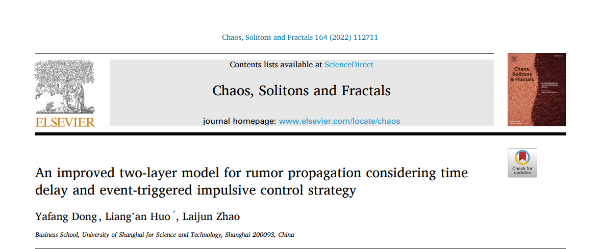 近日,我院管理科学与工程专业博士生陆续在中科院1区Top期刊《Chaos, Solitons & Fractals》上发表论文。
