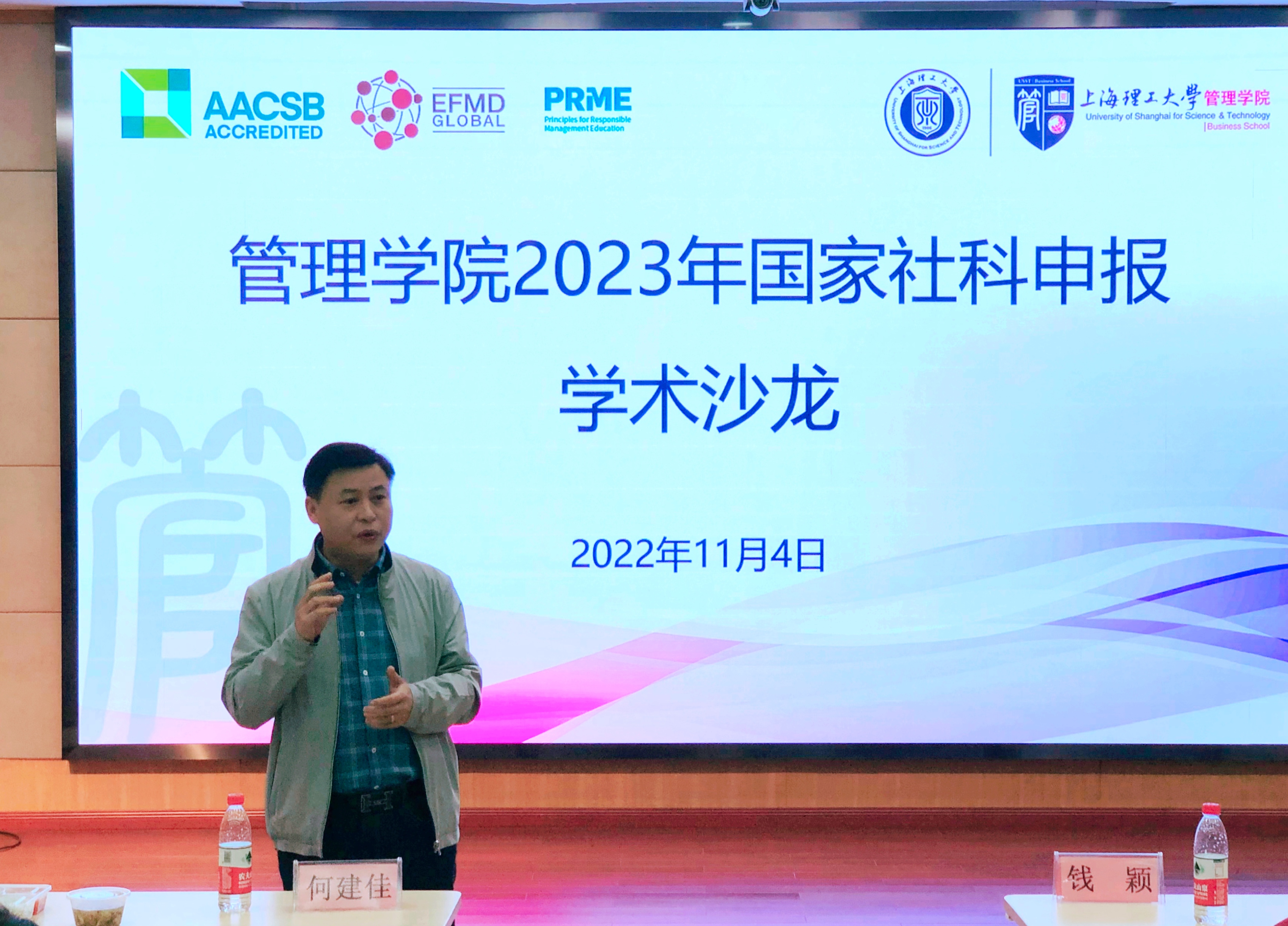 为进一步调动教师申报基金的积极性,激发科研活力,拓展研究思路,11月4日,学院在四楼第二会议室报告厅举办沪江经管论坛系列活动(第三十六期)之2023年国家社科申报学术沙龙。钱颖教授、赵欣副教授应邀为学院教师作报告,分享申报经验。会议由何建佳副院长主持,赵来军院长及30余名教师参与了会议。
