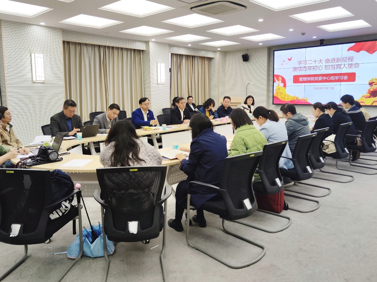 11月17日,管理学院党委中心组举行了以“学习二十大 奋进新征程 赓续百年初心 担当育人使命”为主题的学习会。校党委副书记、副校长盛春,校党委常委、宣传部部长叶磊,宣传部副部长卢萧,管理学院党委班子成员,公共管理系教工党支部党员参加本次学习会。学习会由管理学院党委书记马静波主持。