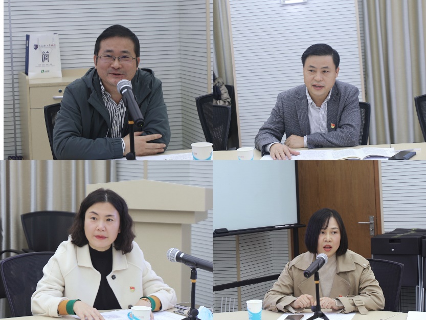 在交流发言环节,与会人员围绕学习主题进行了深入交流,公共管理系系主任朱水成、管理学院副院长何建佳、管理学院党委副书记蒲莹莹、公共管理系教师谢媛交流了学习贯彻党的二十大精神心得体会,并汇报了下一步将学习党的二十大精神和实际工作结合起来的思路和打算。