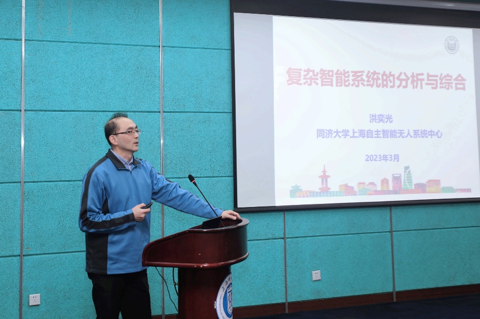 在报告会中,洪奕光从非线性、随机性和多智能体三个方面介绍了其团队在感知、演化、学习、决策、控制等方面的理论成果以及在无人系统、智能电网、生物医学、量子网络、社会网络等方面的应用成果。他鼓励大家在科学研究中要注重多学科交叉,要善于发现问题、提出问题,构建研究体系,要树立远大理想,并与参会师生就复杂性研究相关问题进行了深入的互动交流。