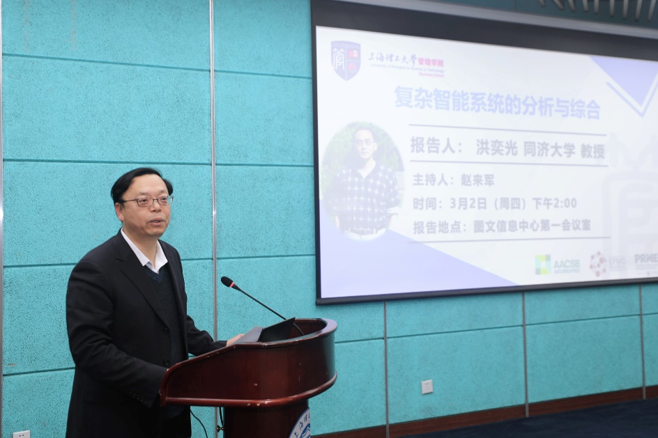 3月2日,同济大学洪奕光教授来校交流访问,并作了题为“复杂智能系统的分析与综合”的学术报告。校长丁晓东、校党委副书记顾春华出席本次报告会。来自全校300余位师生参加了本次报告会。报告会由管理学院院长赵来军主持。