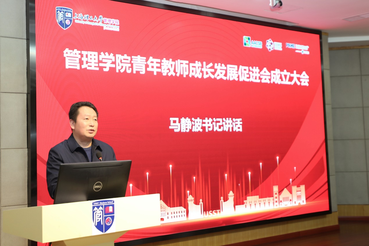 马静波在讲话中表示青促会的宗旨是为服务于管理学院高质量发展的大局,帮助学院青年教师快速成长,推进青年教师育人、教学、科研能力提升。希望通过青促会提高青年教师的凝聚力,创新工作模式,更好地激发青年教师在学校各项事业建设中的积极作用,以实际行动为学校创建全国文明校园、建设高水平大学贡献力量。