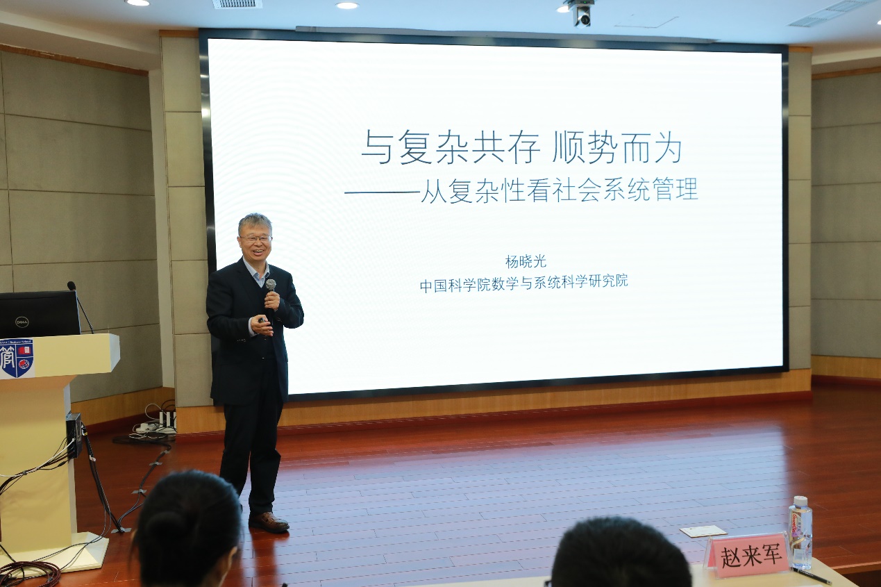 4月6日下午,中国科学院数学与系统科学研究院研究员、中国系统工程学会理事长、欧亚系统科学研究会副理事长杨晓光应邀至上海理工大学管理学院作“与复杂共存 顺势而为——从复杂性看社会系统管理”学术报告。报告由上海理工大学管理学院院长赵来军主持,学校系统科学学科相关师生八十余人现场聆听本次报告。