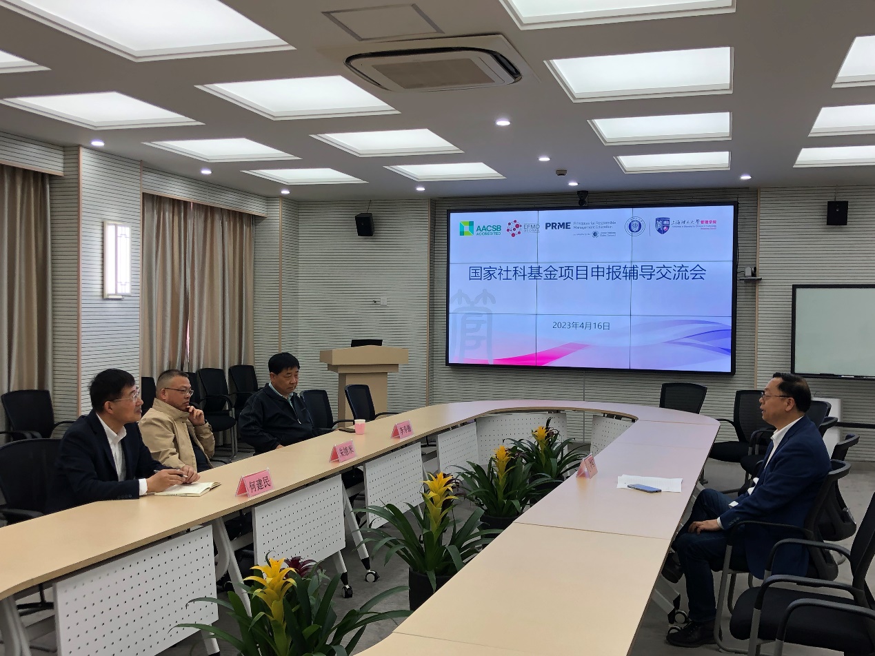 416日,管理学院举办沪江经管论坛系列活动(第49期)之国家社科基金项目申报辅导交流会。此次活动,学院邀请上海交通大学朱德米教授、上海交通大学李寿德教授、上海财经大学何建民教授、上海理工大学管理学院院长赵来军教授为学院教师作“一对一”辅导。活动由管理学院院长赵来军主持。