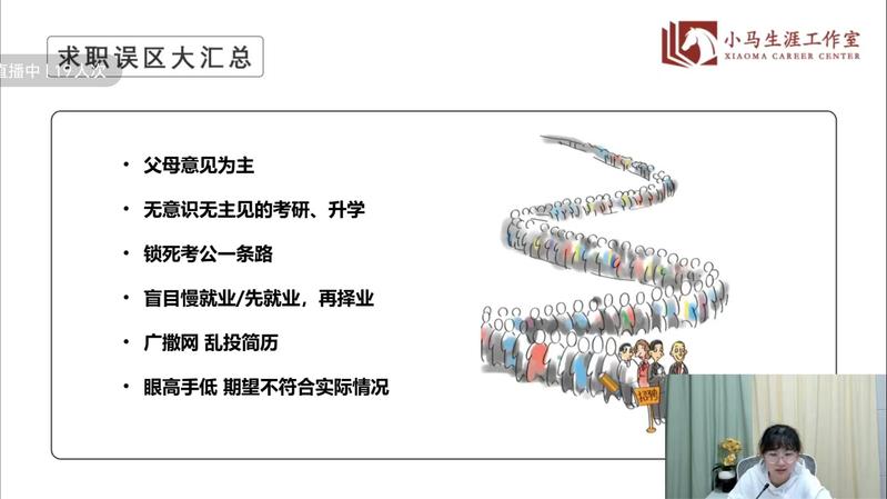 本次直播课的主题是“大学生就业风险防范与就业准备”,老师将内容划分成了三部分:进入职场之前、常见就业风险与误区和如何选择最合适的offer。第一部分包括心态的转换、目标的树立和能力的提升,第二部分汇总了应届生的诸多求职陷阱与误区,第三部分由兴趣引出对职业价值观的介绍,最后运用了决策平衡单这一工具来辅助大家权衡职业决策,从而选出最佳offer。