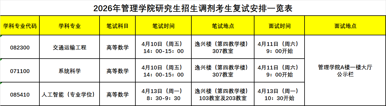 按照教育部《2026年全国硕士研究生招生工作管理规定》、《2026年上海市硕士研究生复试工作指导意见》,根据《上海理工大学2026年硕士研究生招生复试办法》,组织管理学院硕士研究生招生调剂考生复试考试,安排如下: