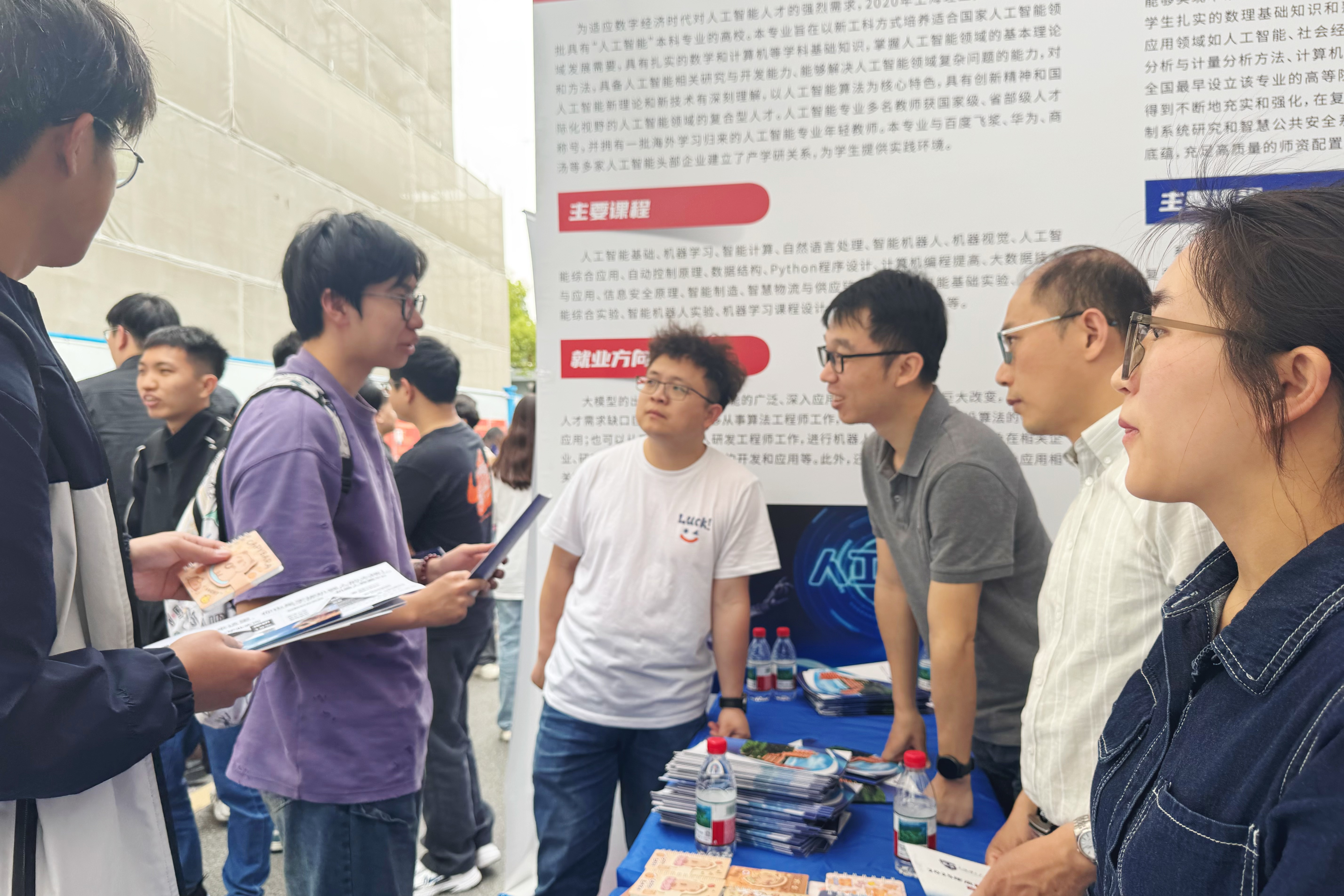 咨询台上人头涌动,学生们就专业特色、课程体系、就业前景进行咨询。刘媛华、张广介绍了专业情况、实验室设备、科研成果等,帮助同学们找到心仪专业方向。费晨、刘安全一对一为学生解答专业学习问题,根据学生学业情况,为同学们量身制定成长计划。