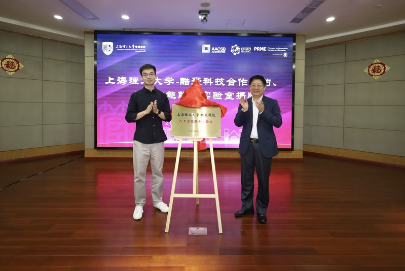 张华与张佳维共同为“上海理工大学—酷爱科技人工智能联合实验室”揭牌