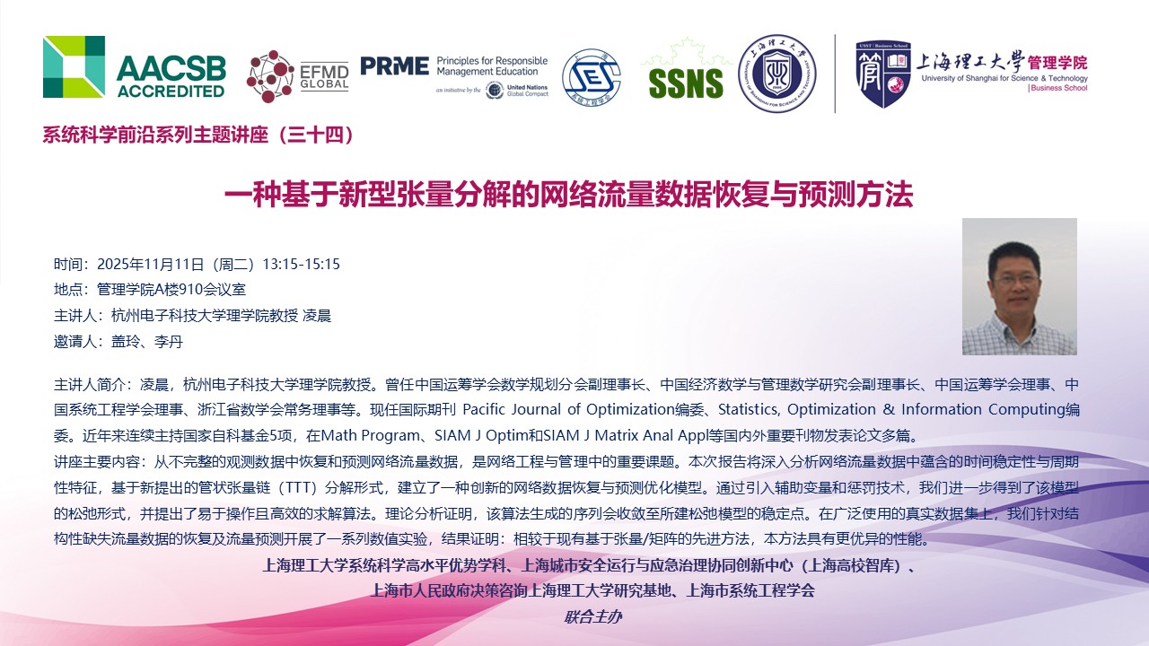 系统科学前沿系列主题讲座(三十四):一种基于新型张量分解的网络流量数据恢复与预测方法