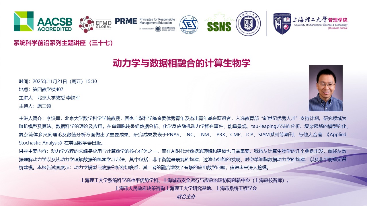 系统科学前沿系列主题讲座(三十七):动力学与数据相融合的计算生物学