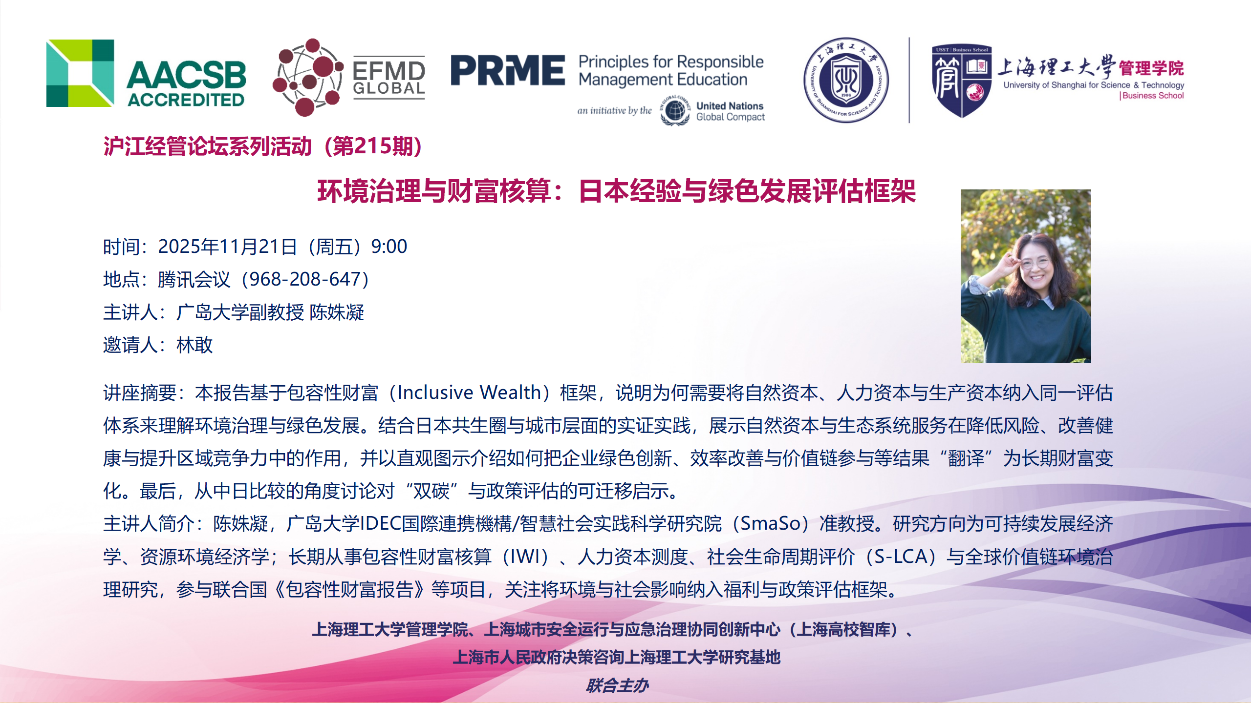 沪江经管论坛系列活动(第215期):环境治理与财富核算:日本经验与绿色发展评估框架