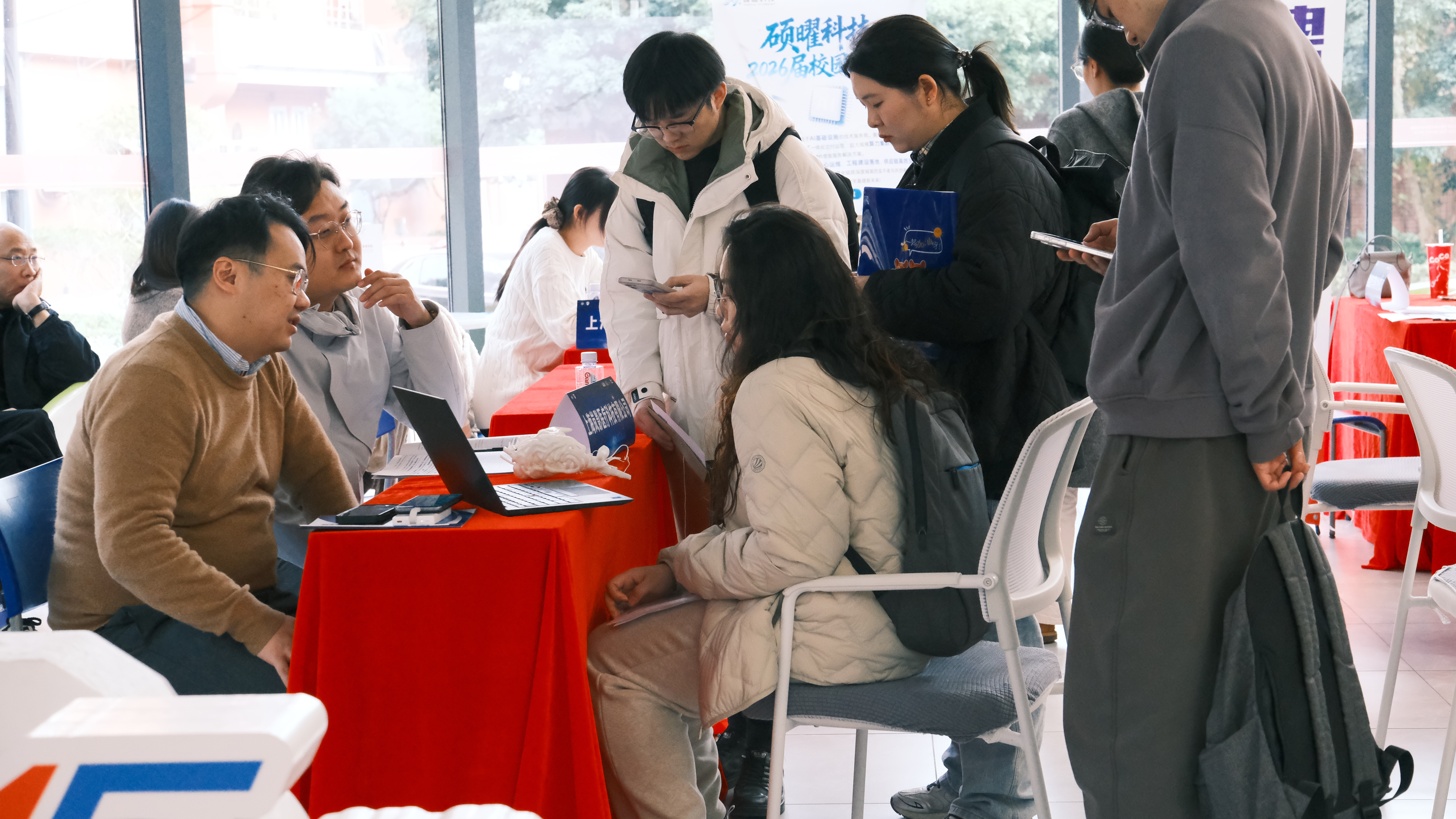 12月4日下午,由管理学院联合虹口区人才工作局、共青团虹口区委员会、虹口区人力资源和社会保障局、上海北中环科创企业发展(集团)有限公司共同举办的“相约暖冬·offer等你”2026届毕业生秋季专场招聘会在校学生发展中心举行。上汽大通、华润医药、上海芯导电子等近百家重点企业携1500余个全职及实习岗位、2000余名用人需求精准入校,吸引千余名毕业生到场,现场人头攒动、气氛热烈。