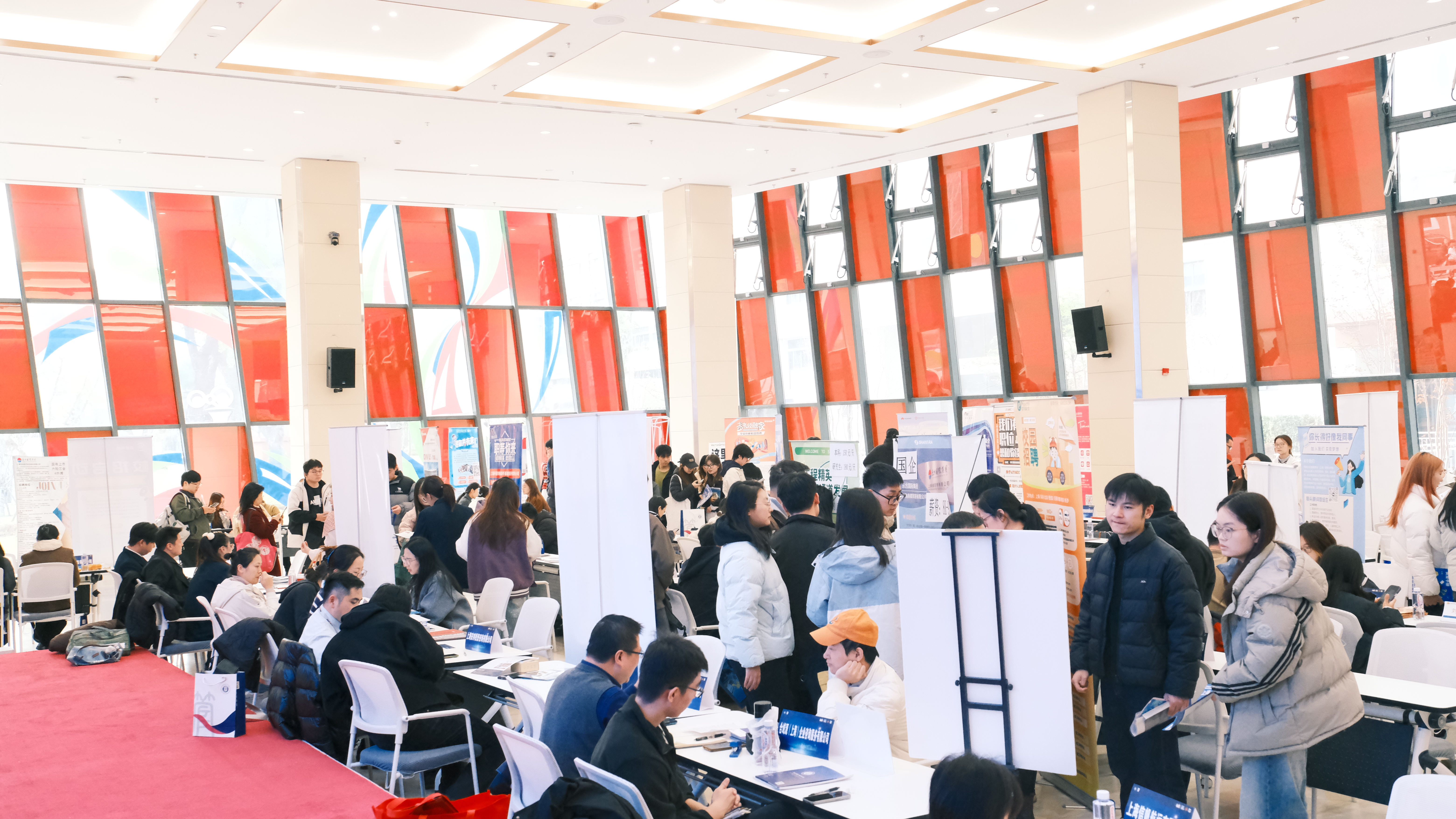 12月4日下午,由管理学院联合虹口区人才工作局、共青团虹口区委员会、虹口区人力资源和社会保障局、上海北中环科创企业发展(集团)有限公司共同举办的“相约暖冬·offer等你”2026届毕业生秋季专场招聘会在校学生发展中心举行。上汽大通、华润医药、上海芯导电子等近百家重点企业携1500余个全职及实习岗位、2000余名用人需求精准入校,吸引千余名毕业生到场,现场人头攒动、气氛热烈。