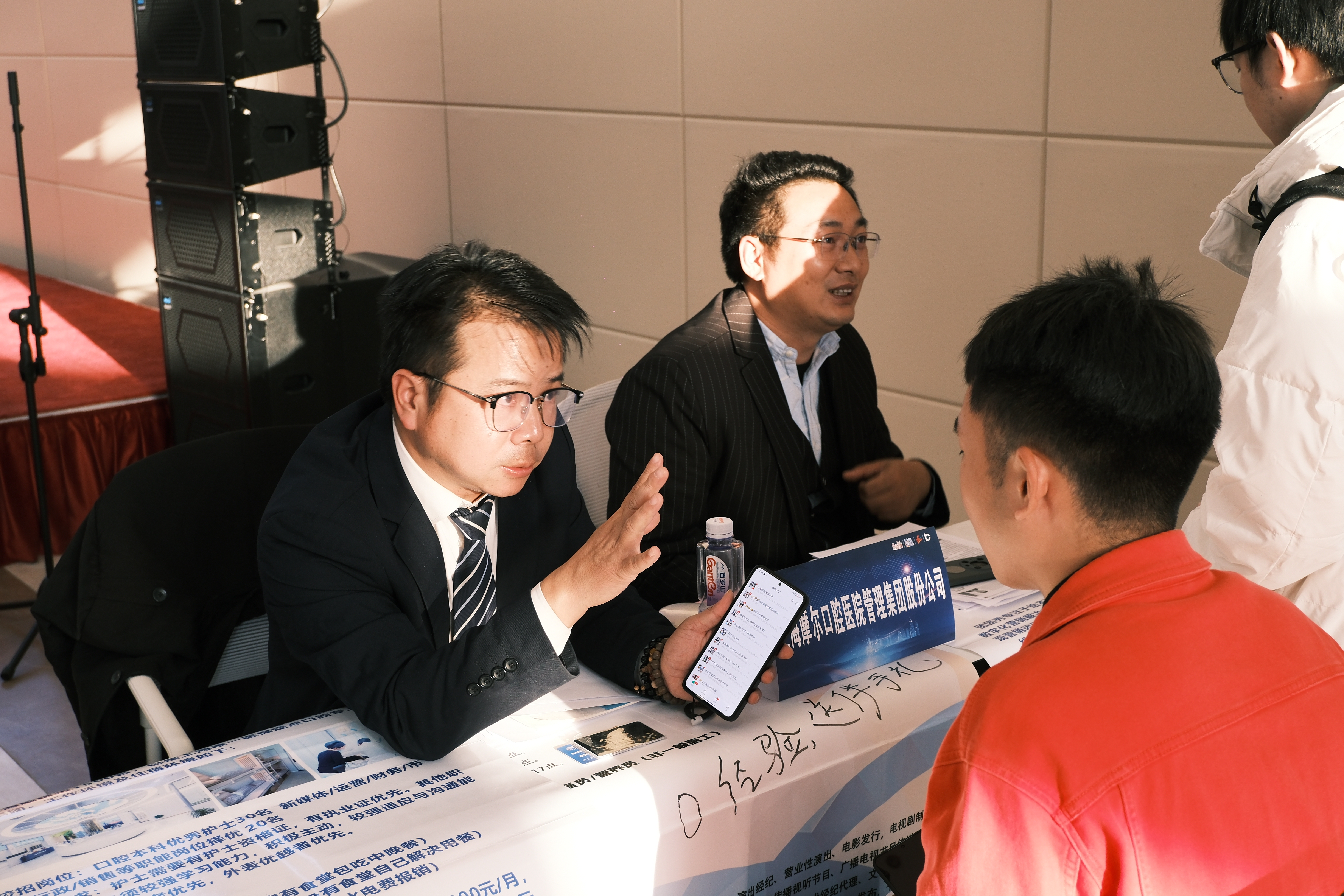 现场同步设立“求职加油站”与“征兵咨询点”。学校和学院职业导师团为同学们提供简历修改、面试辅导、政策答疑等“一对一”服务,累计修改简历百余份;征兵咨询点前,20余名有志学子详细了解军地联合培养、服役优待等政策,为职业生涯增添多元选择。