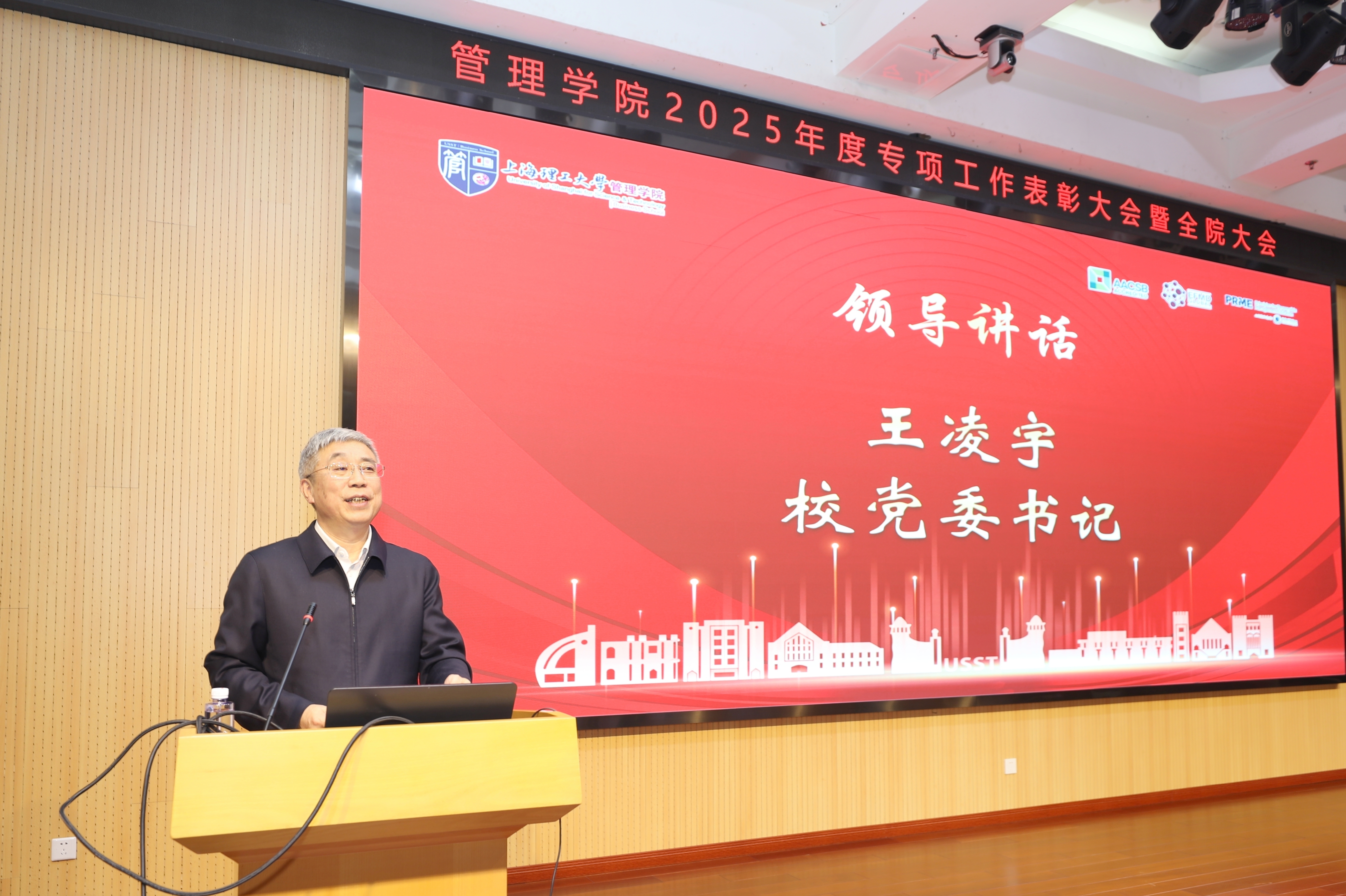 3月17日下午,上海理工大学管理学院举行“深化产教融合协同育人,凝心聚力共创百廿辉煌”2025年度专项工作表彰大会暨新学期工作会议。校党委书记王凌宇,党政办副主任孔夏萌、教务处副处长张鲁潮,学院领导班子成员及全院教师出席大会。