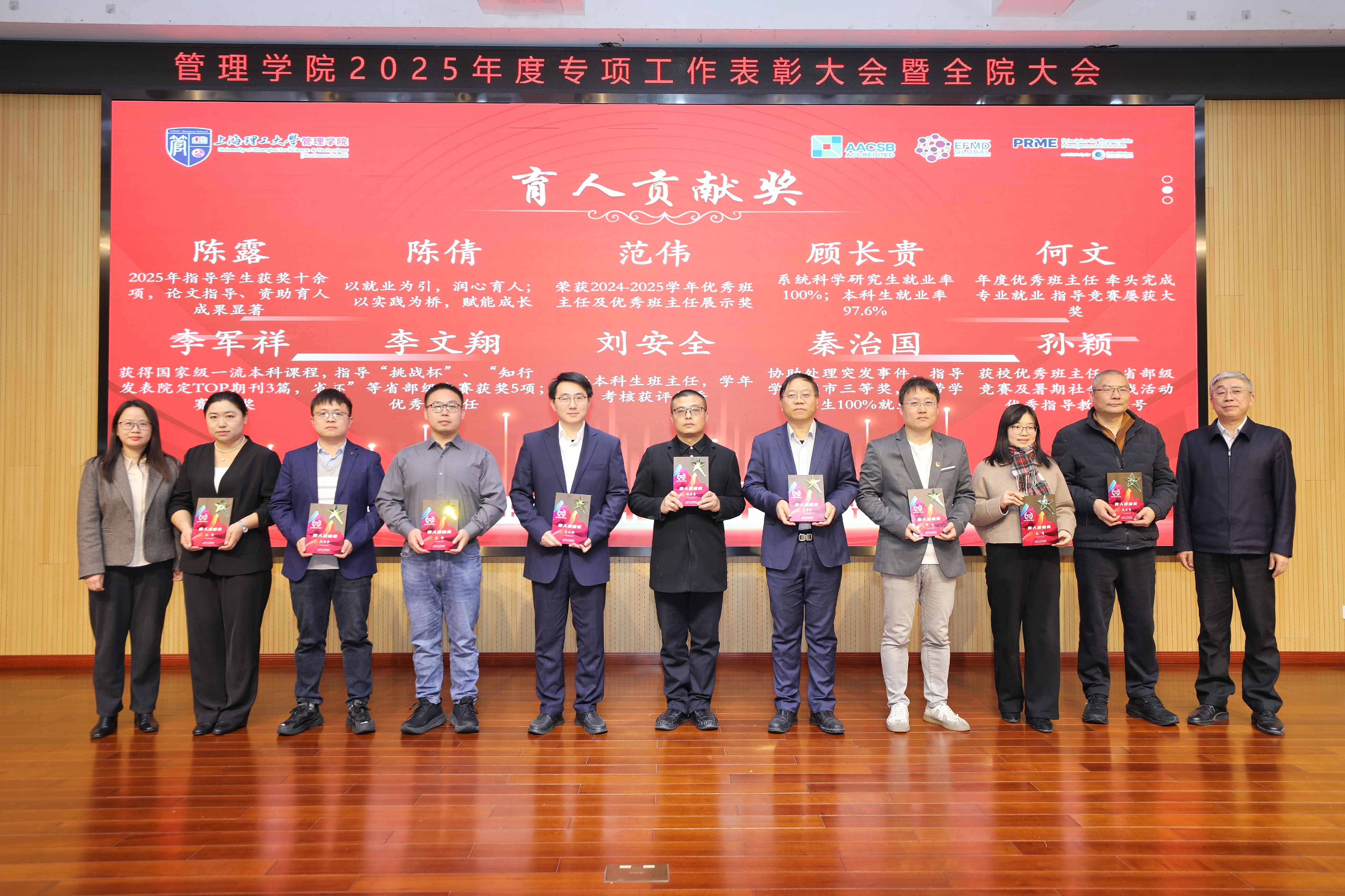 为表彰过去一年中在学院教学、科研、育人、文化、服务等专项工作中表现优秀的教师,号召全院教师向先进学习,促进学院发展再上新台阶,颁发了“教学贡献奖”20项、“科研贡献奖”30项、“育人贡献奖”20项、“服务贡献奖”5项、“文化贡献奖”5项。颁奖仪式由系统科学系青年教师孙颖主持。