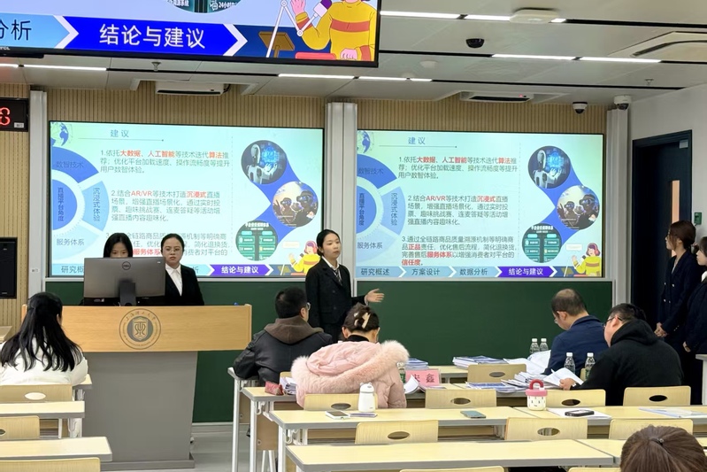 本次选拔赛采取“报告评审+现场答辩”的竞赛形式。比赛中,各参赛团队配合默契、思维清晰、语言简洁,从选题、方案设计、调查实施、分析与结论等方面进行展示了全面的展示和陈述。参赛作品涉及人工智能应用、适老化支持、预制菜消费、消费补贴、情绪消费等众多领域的热点问题。评委从报告选题、调查方法、调查过程、数据分析、汇报答辩等多个角度对各参赛队伍进行了详细点评,并针对存在的问题提出了改进建议。