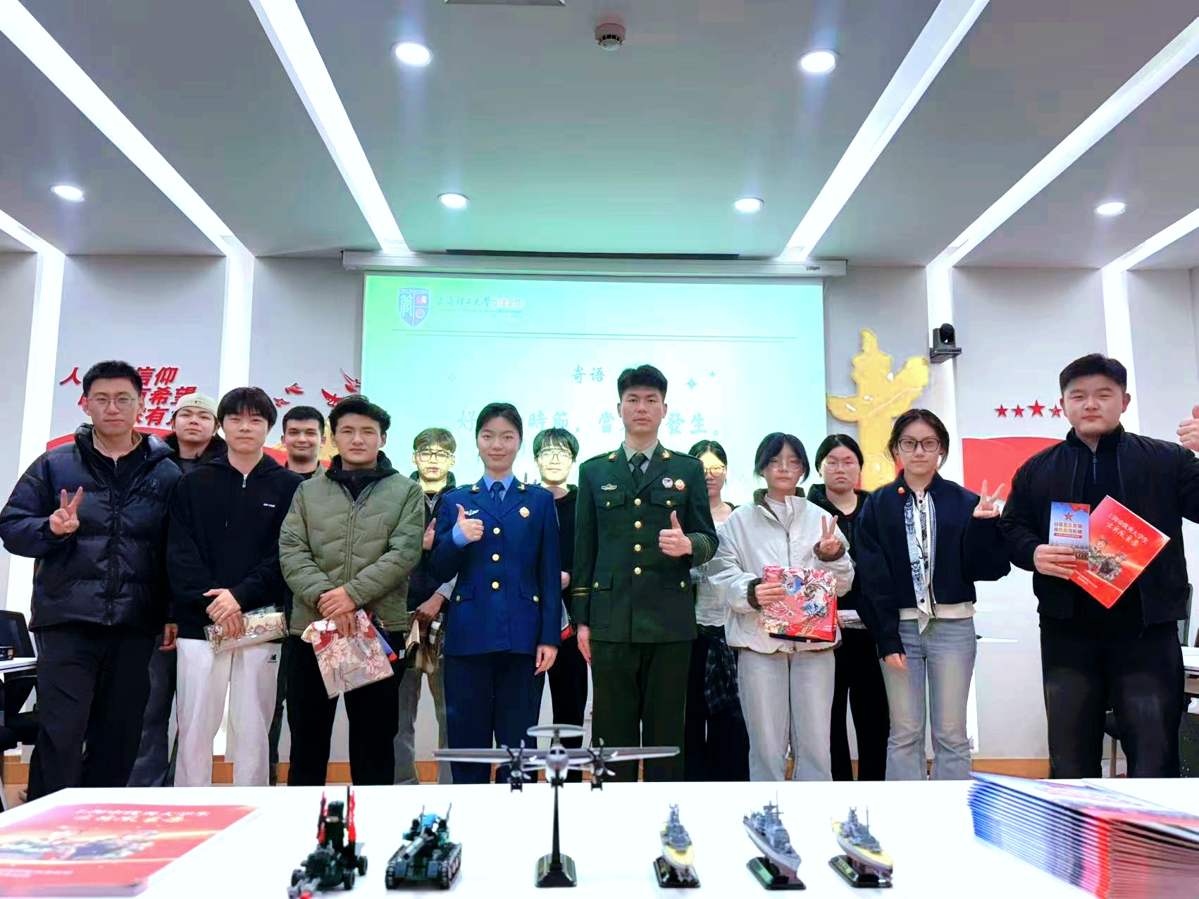 活动尾声,各小组轮流展示了拼装完成的军事武器积木作品,全体师生共同合影留念。此次“新生·早春时节”活动的成功举办,不仅为师生搭建了一个温馨的沟通平台,更是一堂生动的青春思政课。未来,管理学院将继续依托“365”资助育人品牌,开展更多形式丰富、内涵深刻的育人活动,助力广大学子健康成长、全面发展。