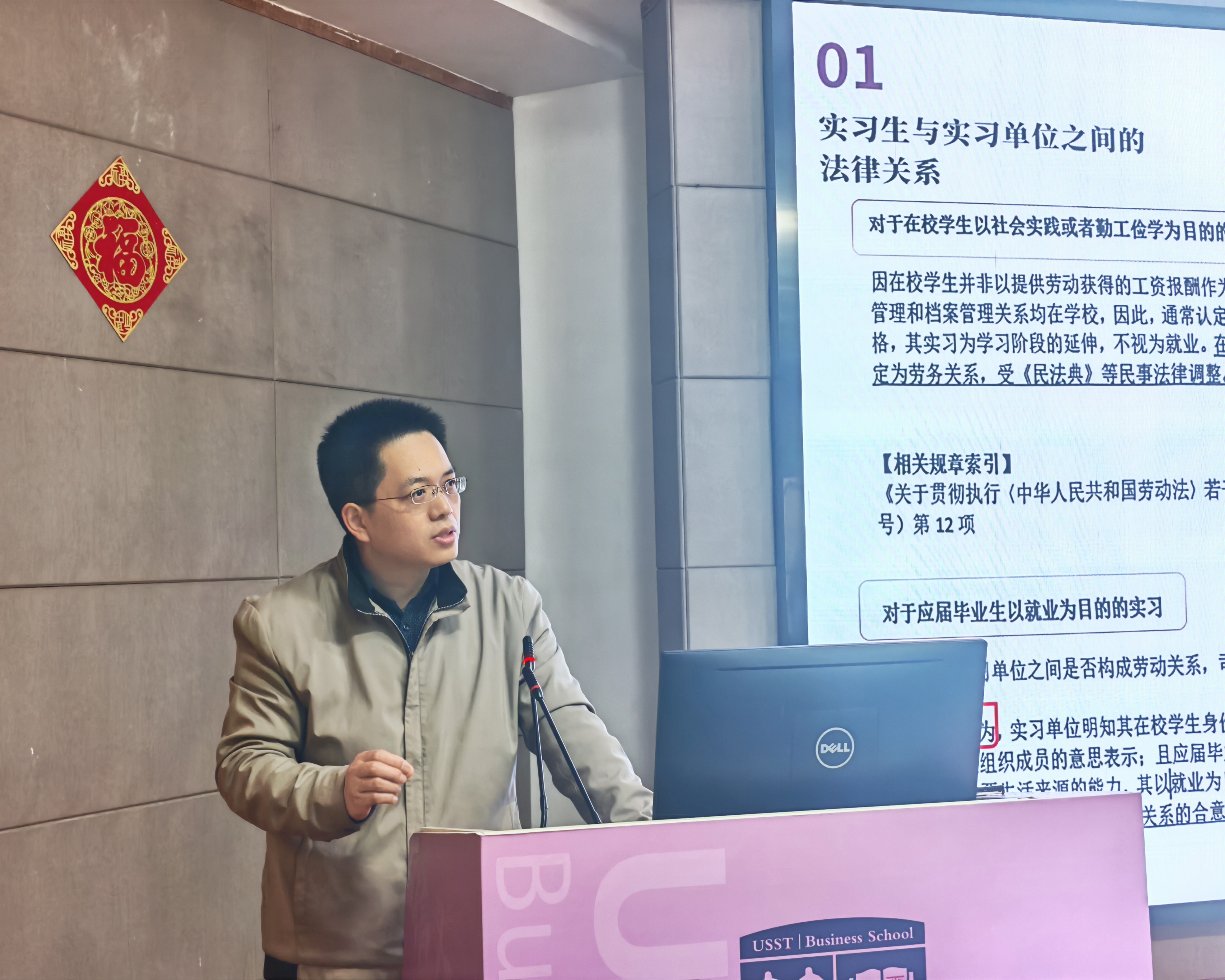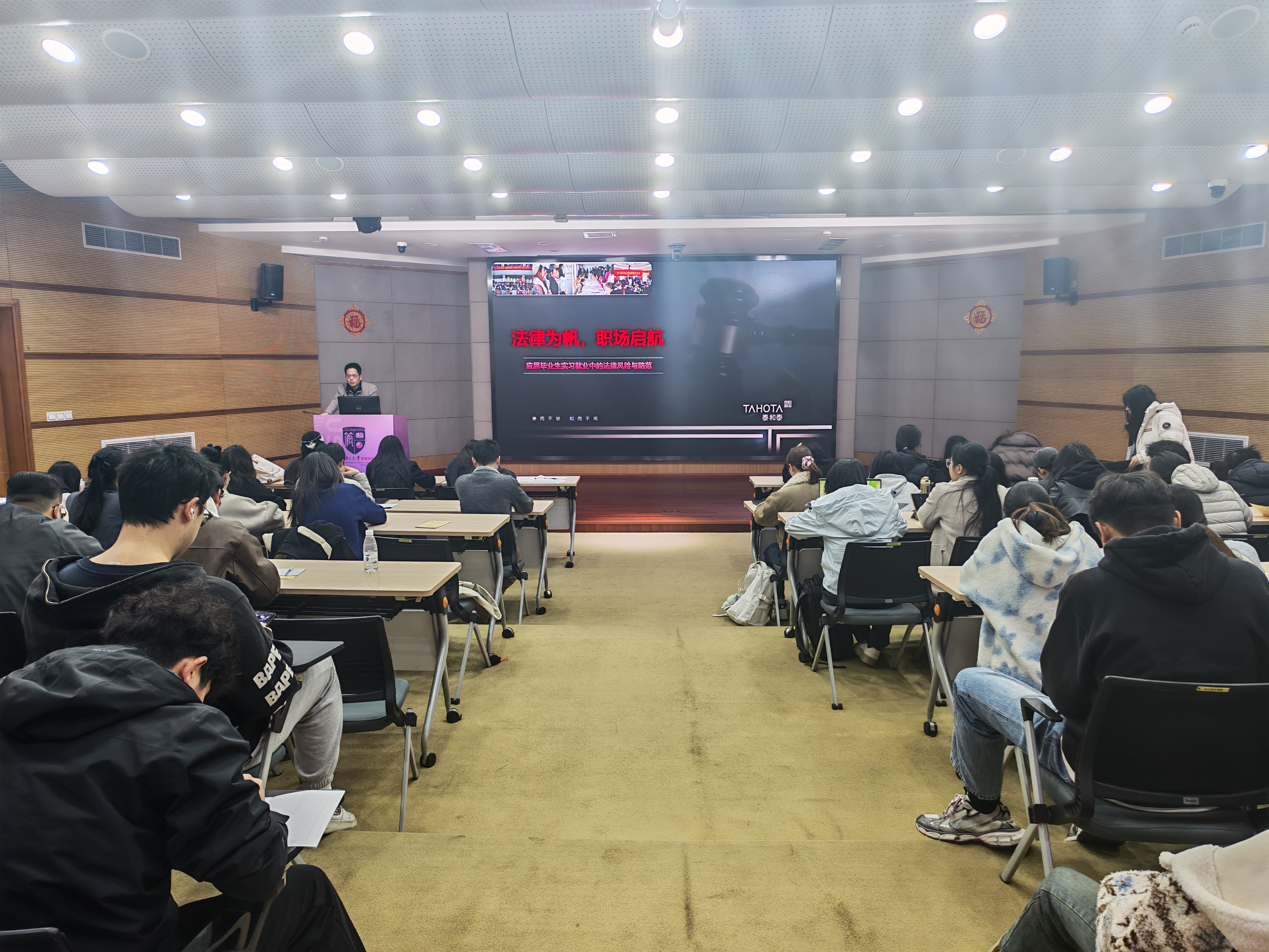 讲座特邀复旦大学法学博士、泰和泰律师事务所(上海办)兼职律师年勇主讲,讲座围绕毕业生从学生身份向劳动者身份转化过程中的常见争议与法律风险展开,结合大量真实典型案例进行深度解读,精准回应了毕业生们最关心的就业法律问题。