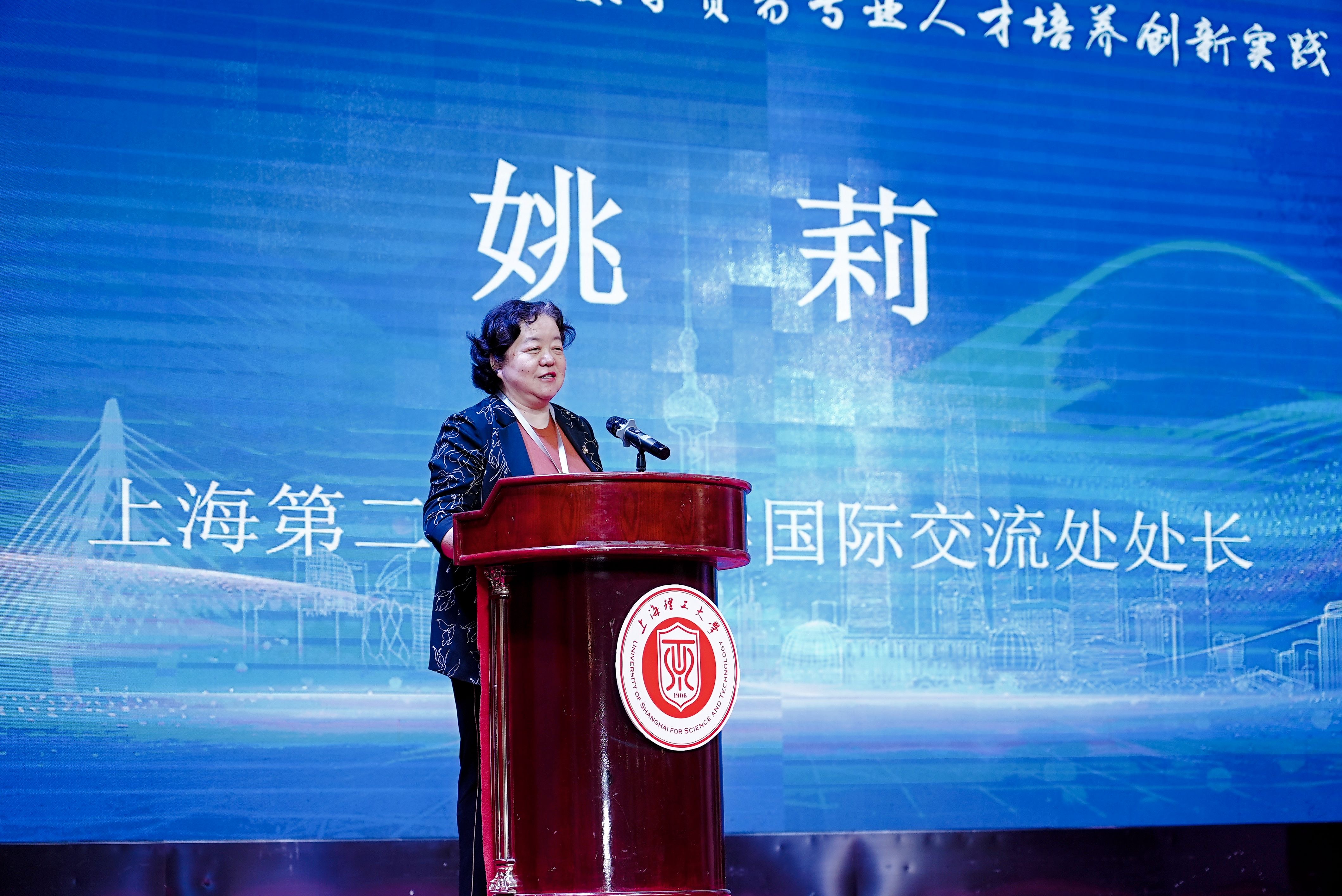 中国贸促会商业行业委员会秘书长姚歆代表中国国际贸易促进委员会商业行业委员会通过视频方式向承办方上海理工大学表示衷心的感谢,表示上海市赛已成为国内国际贸易领域最具影响力的地区学科竞赛,希望越来越多的青年学子通过这一平台来锤炼实战能力。