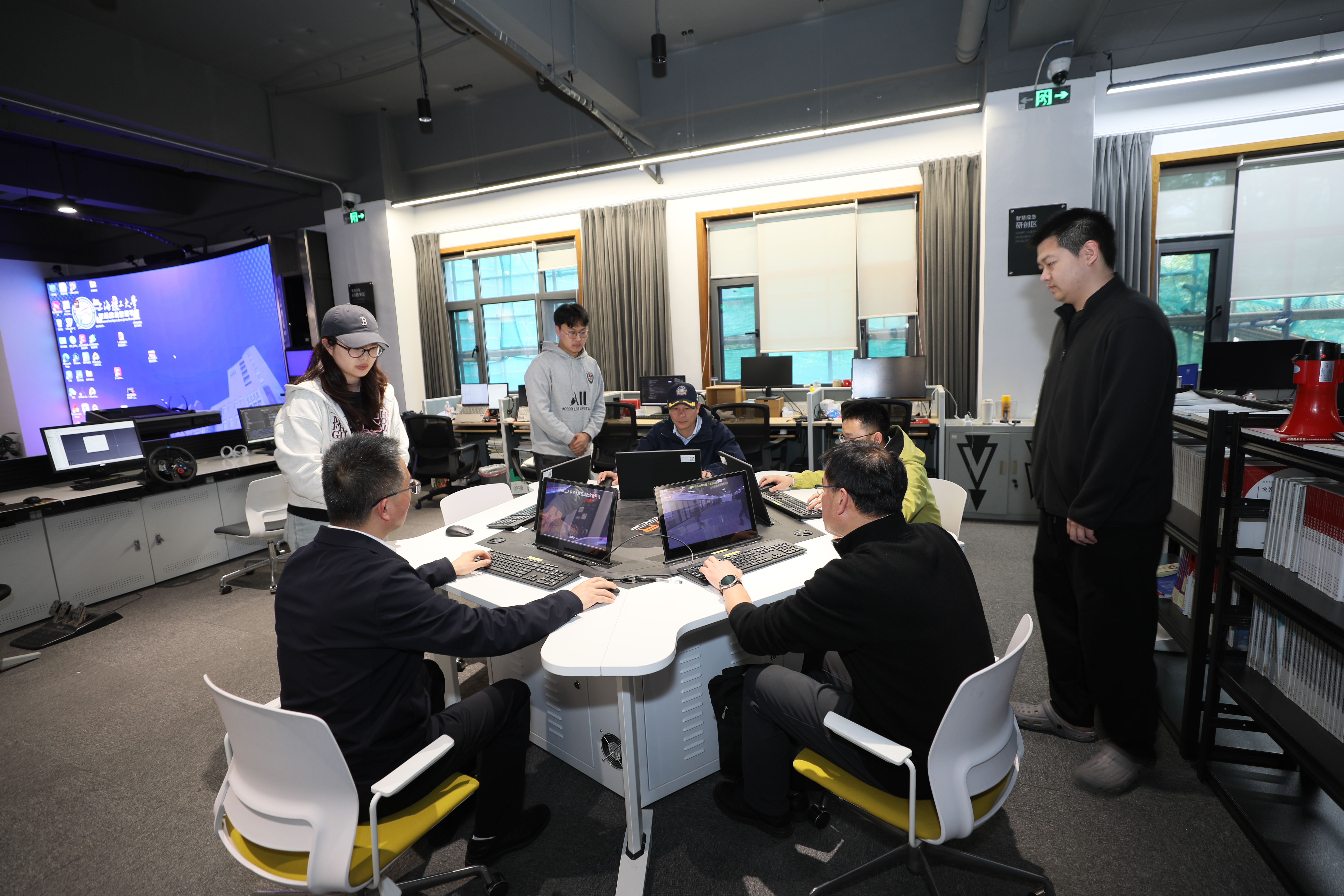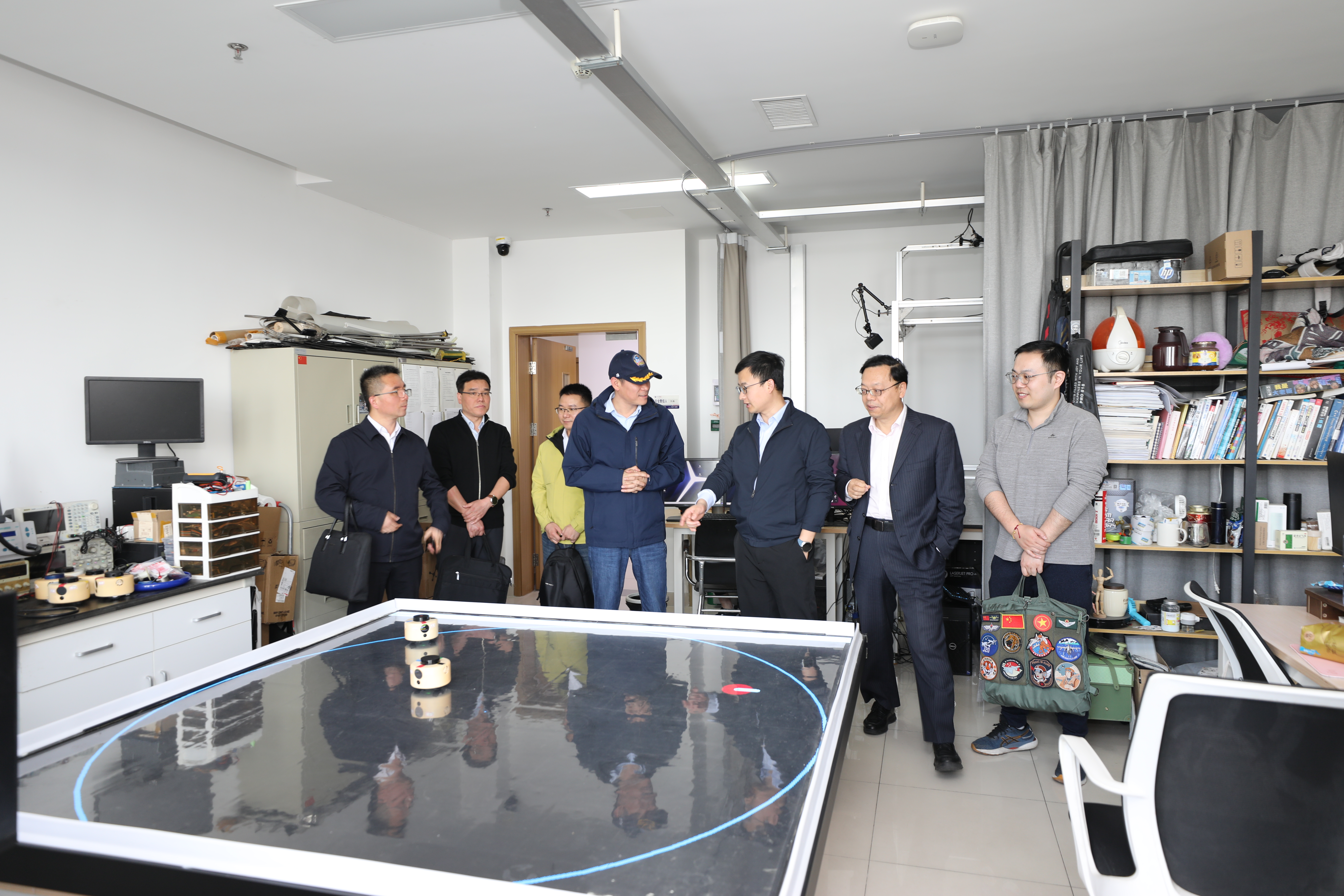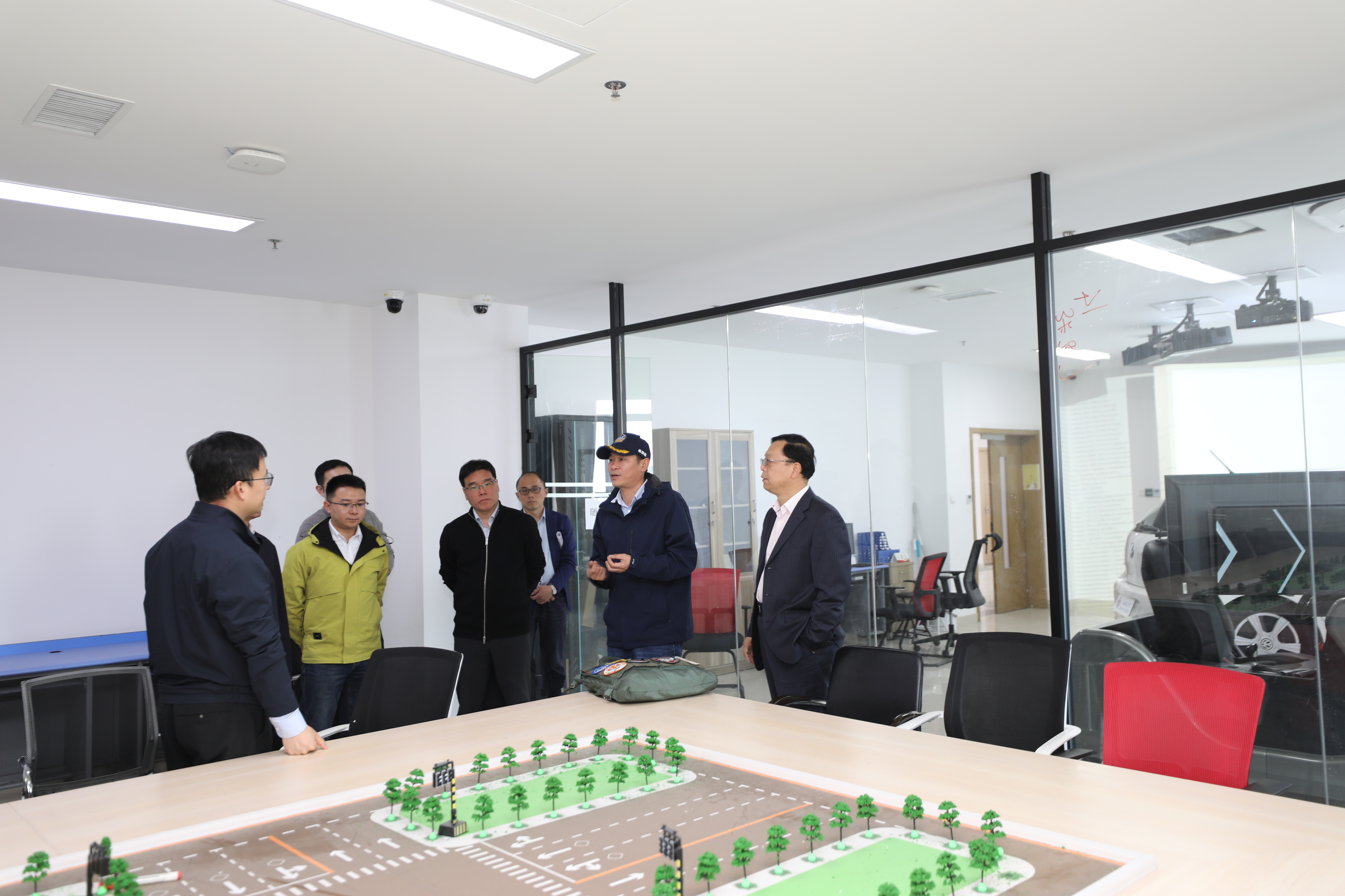 会后安徽徽光智能与宣城职业技术学院一行在赵来军等人的陪同下,参观了学院机器人集群智能与复杂系统控制实验室、驾驶心理及行为分析实验室、智慧应急管理实验室。