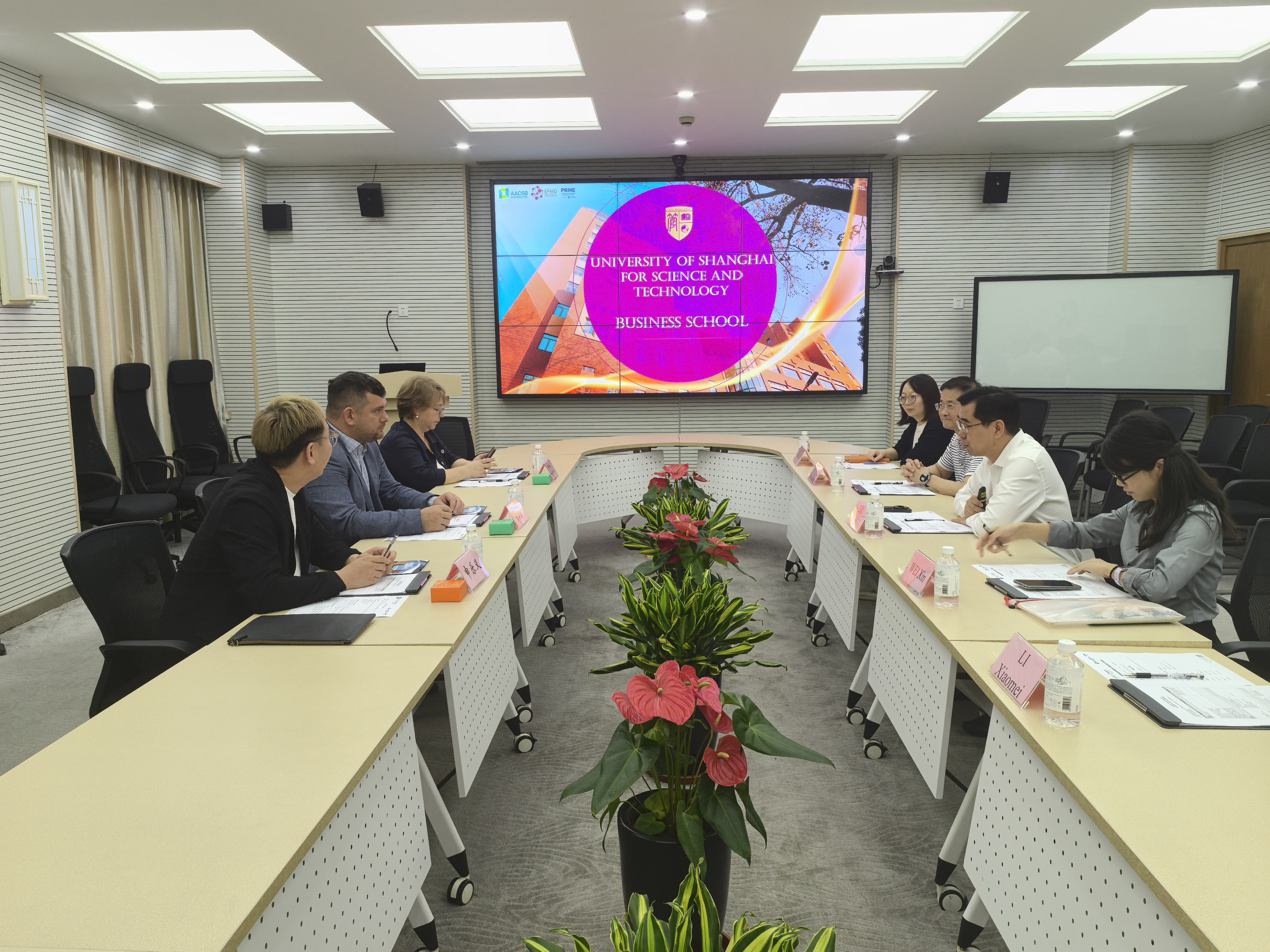 On October 1, a delegation from Peter the Great St. Petersburg Polytechnic University(SPbPU) in Russia visited the Business School. The delegation included Тихонов Дмитрий Владимирович, Vice President of SPbPU; Емельянова Ольга Геннадьевна, Director of the International Education Program Office; and Shen Leyi, Manager of the Center for Chinese Students' Affairs. They were warmly received by Liu Weiwei, Vice Dean of the School, Zhu Shuicheng, Director of the Public Administration Department, and members of the Internationalization Office.