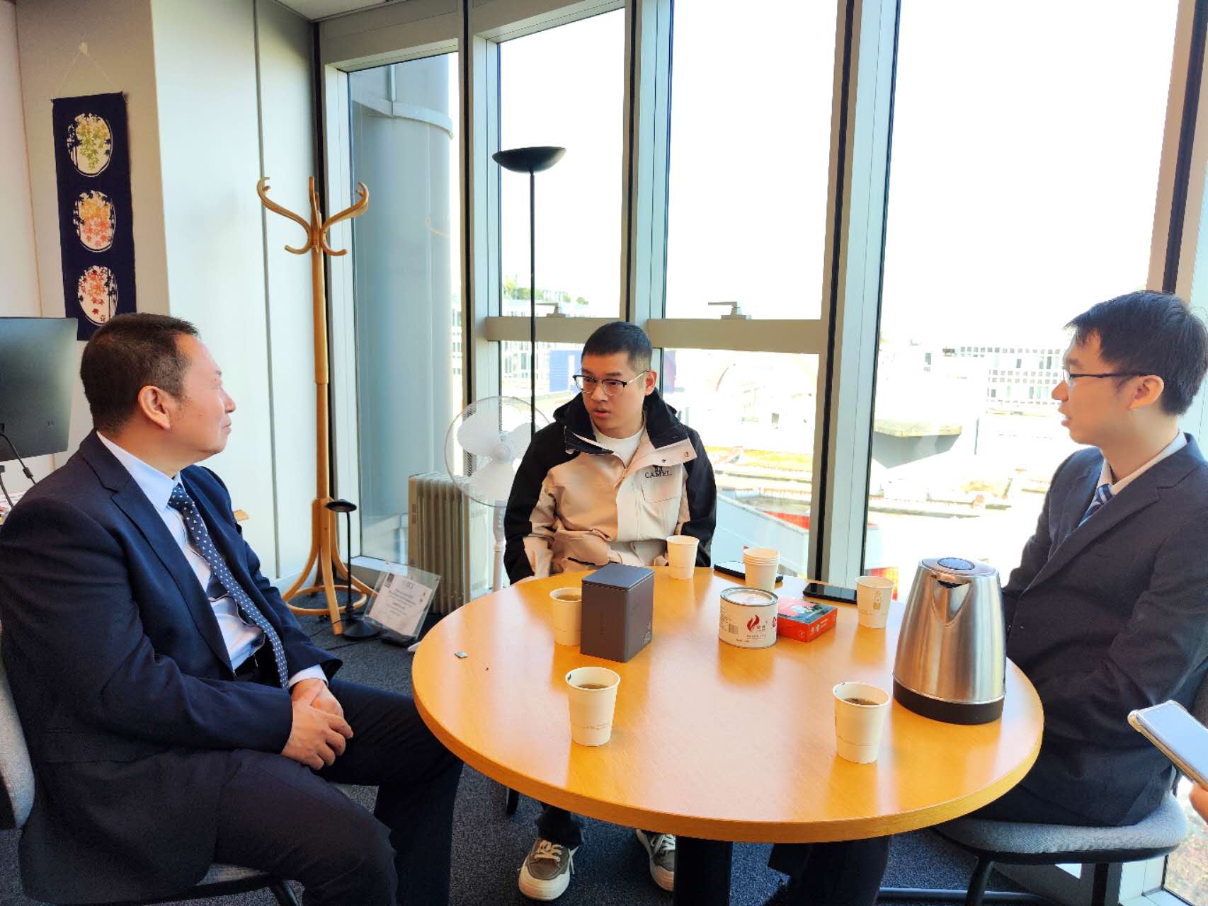 At ESCP Business School, the delegation had a meeting with Zhou Wei, a part-time professor of Business School(also the Director of the Department of Big Data and Business Analytics at ESCP Business School). Zhou Wei introduced his work at ESCP Business School. The delegation also visited Zhen Juntao, a doctoral student undergoing joint training at ESCP Business School, and inquired about his study and life in France. Founded in 1819, ESCP Business School is the world's first business school and one of the world's top business schools.