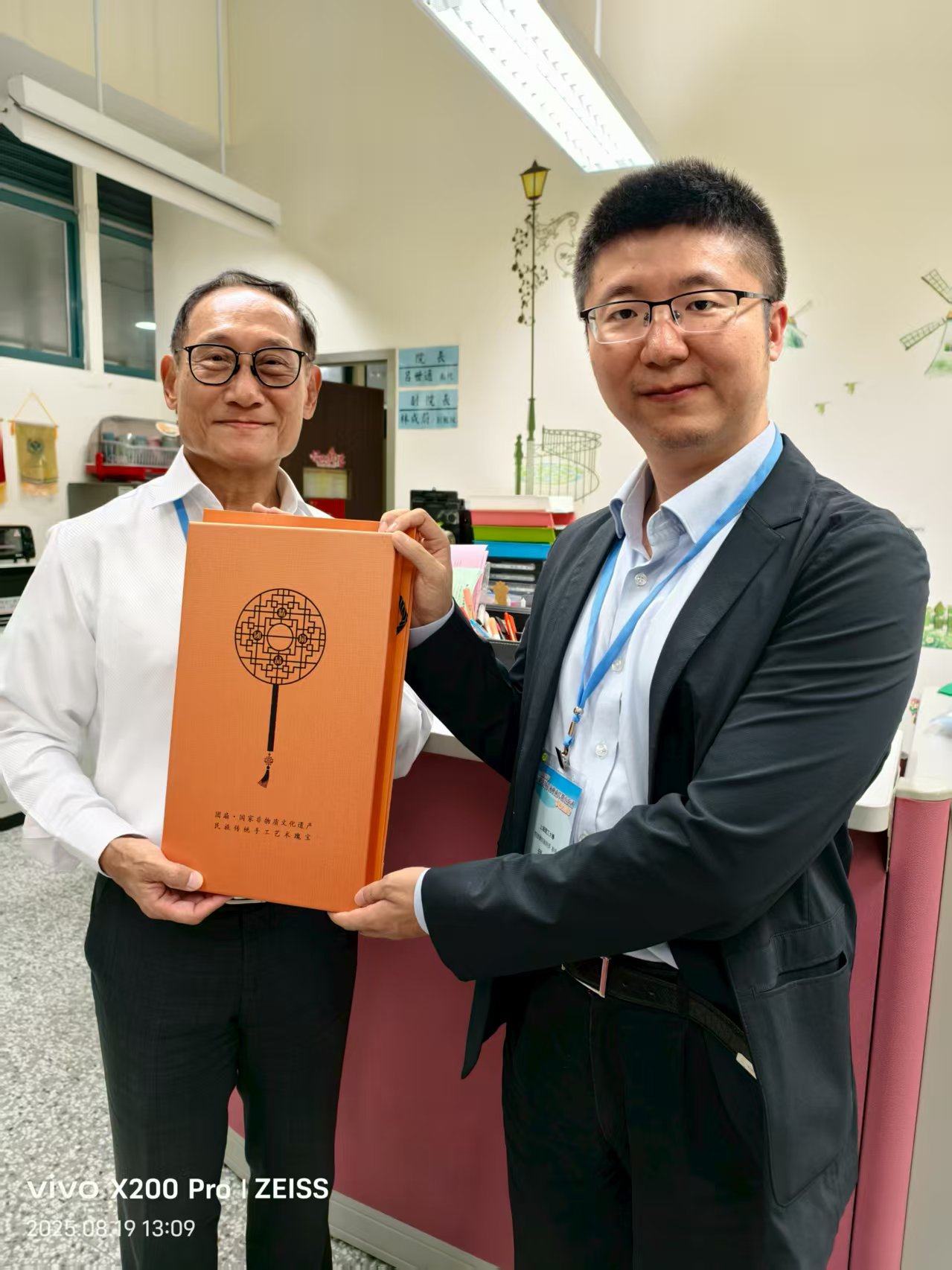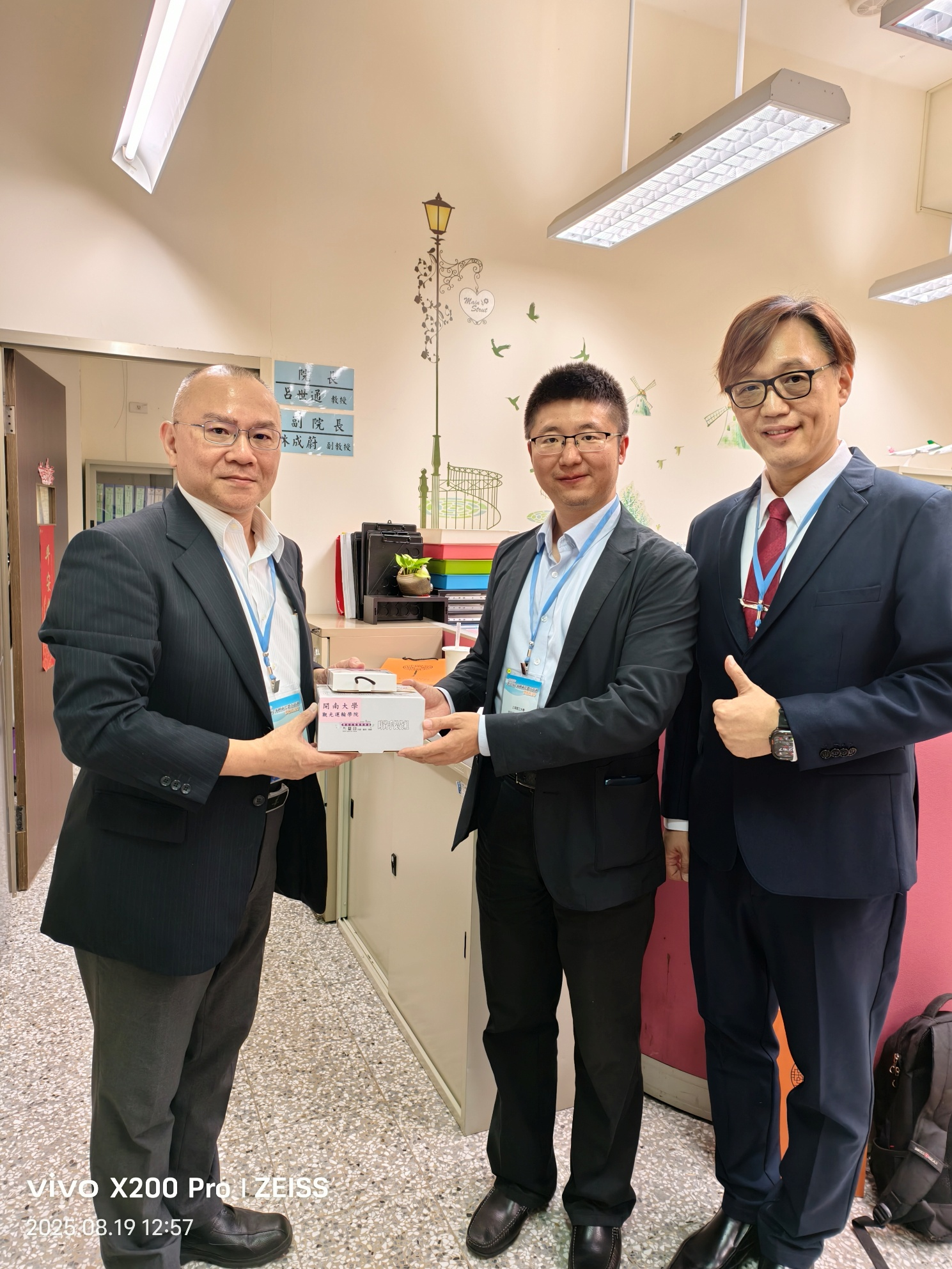 Following the symposium, Zhao Jing exchanged commemorative gifts with Chen Xuetai (Chairman of Taipei Transportation Safety Promotion Association); Zhang Xinfu (Director of Taoyuan City Government Transportation Bureau); Lv Shitong (Dean of College of Tourism and Transportation) and Lin Chengwei (Deputy Dean) of Kainan University.
