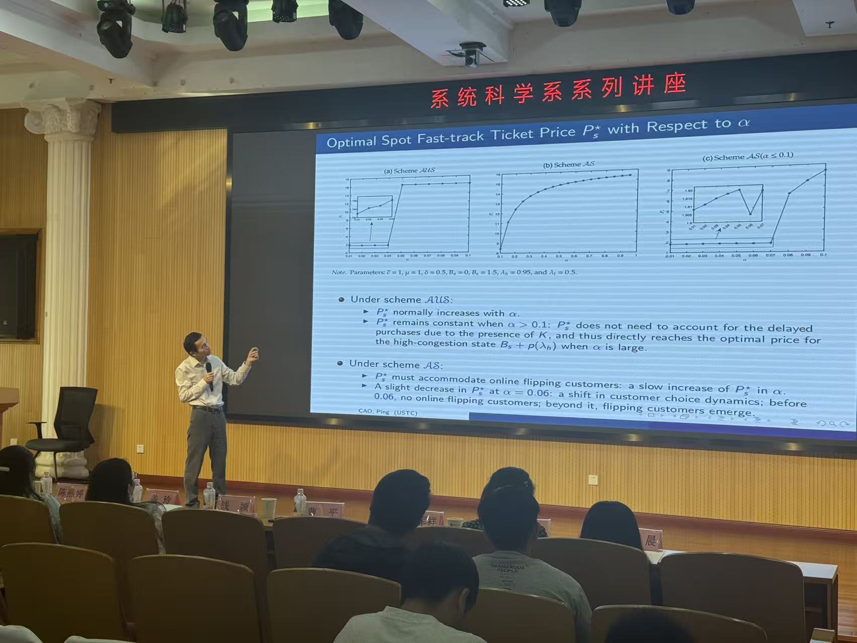 Focusing on key concepts such as queuing systems, priority mechanisms, advance selling, inventory management, and service upgrades, Professor Cao derived relevant computational models using real-world case studies. He explained how to implement advance selling and upgrading functionalities under priority queuing mechanisms in practical scenarios.