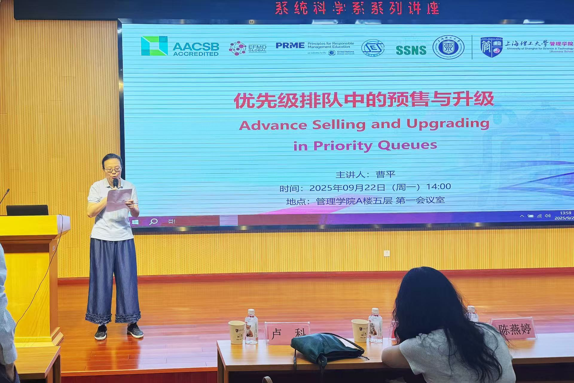 On the afternoon of September 22, the Department of Systems Science at the Business School hosted a special lecture titled Advance Selling and Upgrading in Priority Queues, delivered by Professor Cao Ping from the School of Management, University of Science and Technology of China (USTC). The lecture was chaired by Associate Professor Chen Yanting of the Department of Systems Science, with over 30 faculty members and students in attendance.